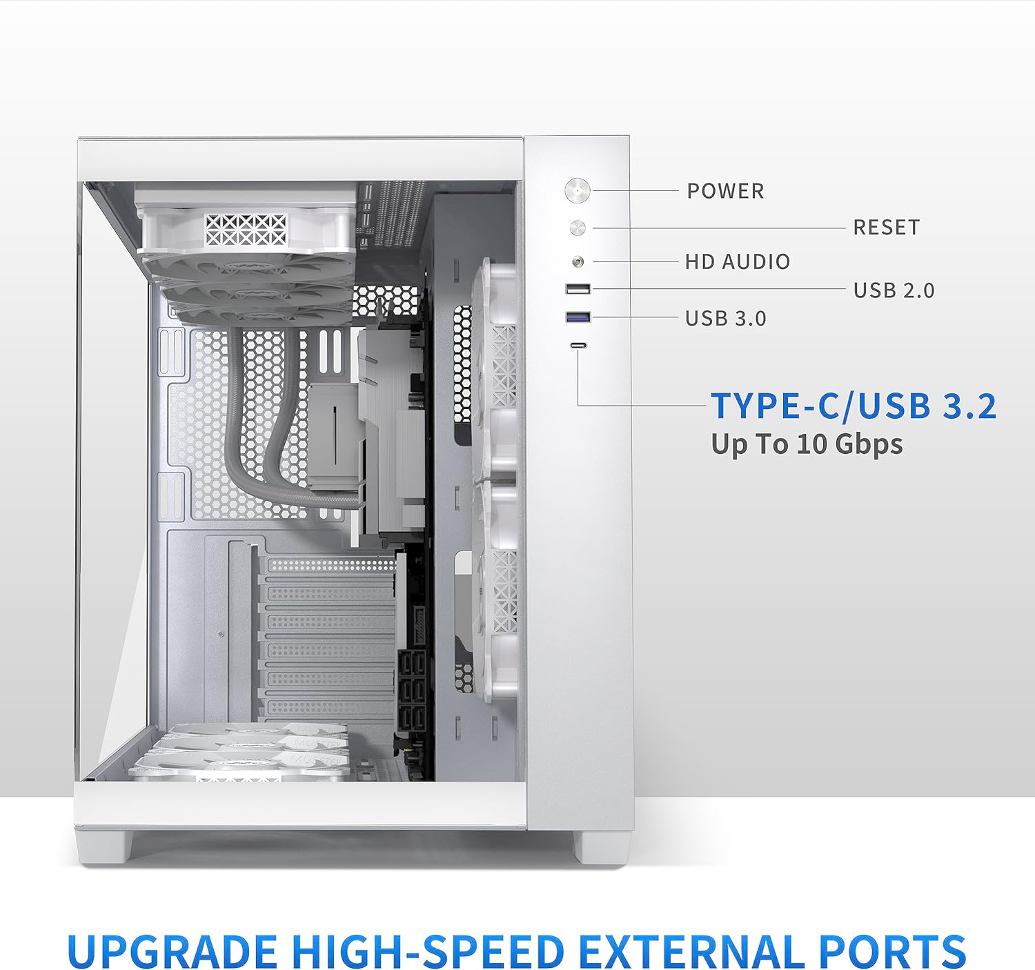 Upgrade High Speed IO Expansion Interface-This computer case is rich in external interfaces to increase the cost, configured with USB3.2/TYPE-C high speed interface and USB 3.0 and other interfaces, which is convenient for connecting a variety of new standard devices, enjoying a higher transmission rate and saving waiting time; enjoying the wonderful experience brought by a higher power supply power.