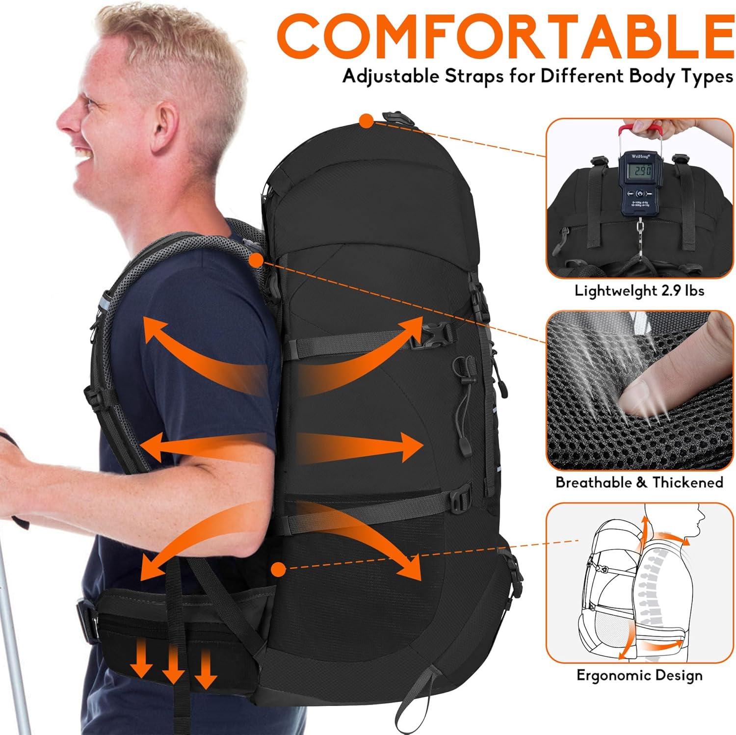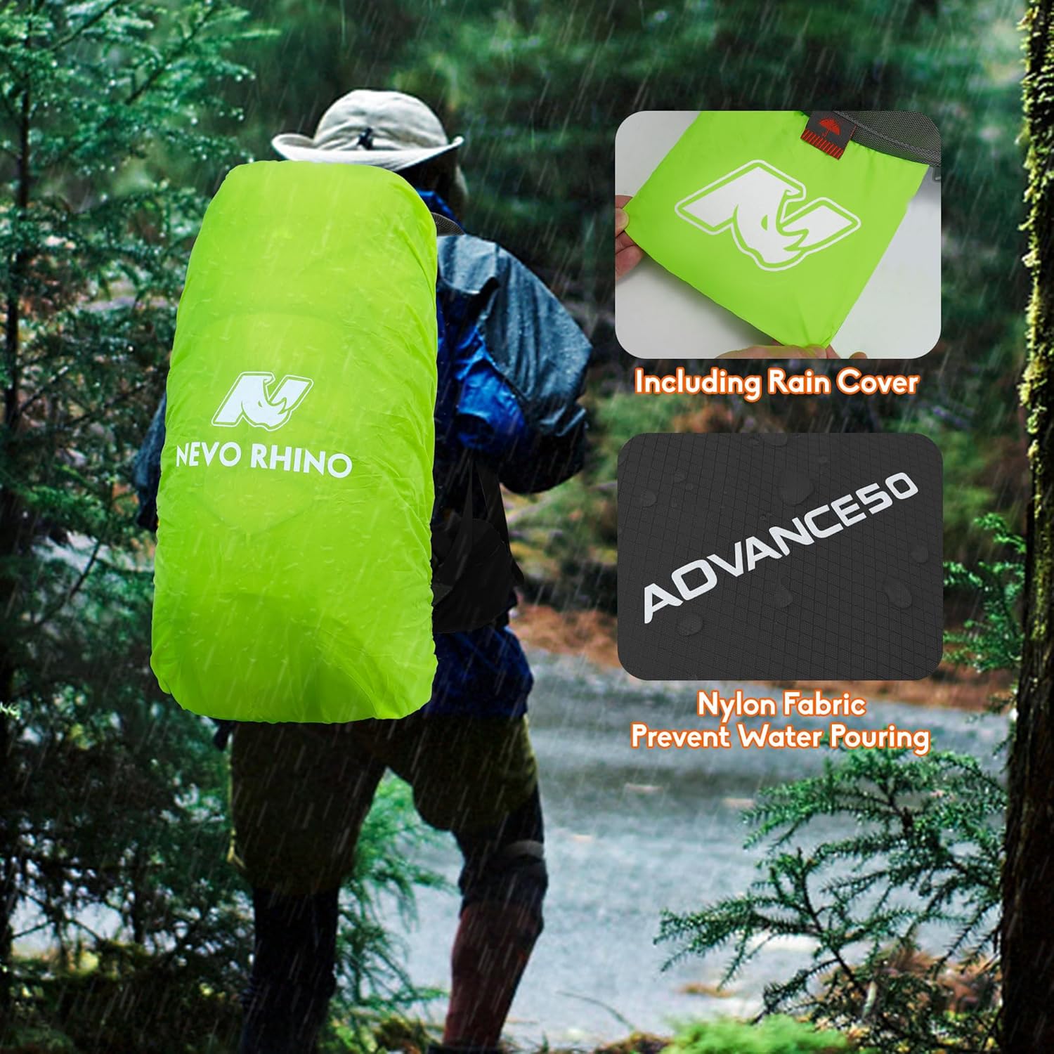 N NEVO RHINO Waterproof Hiking Backpack 50L/60L, Camping Backpack with Rain Cover, Hiking Travel Mountaineering Backpack