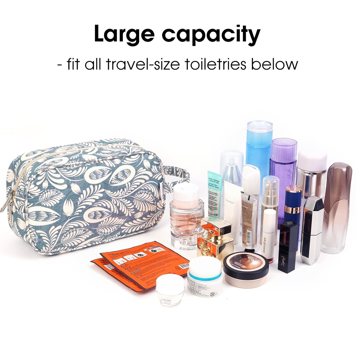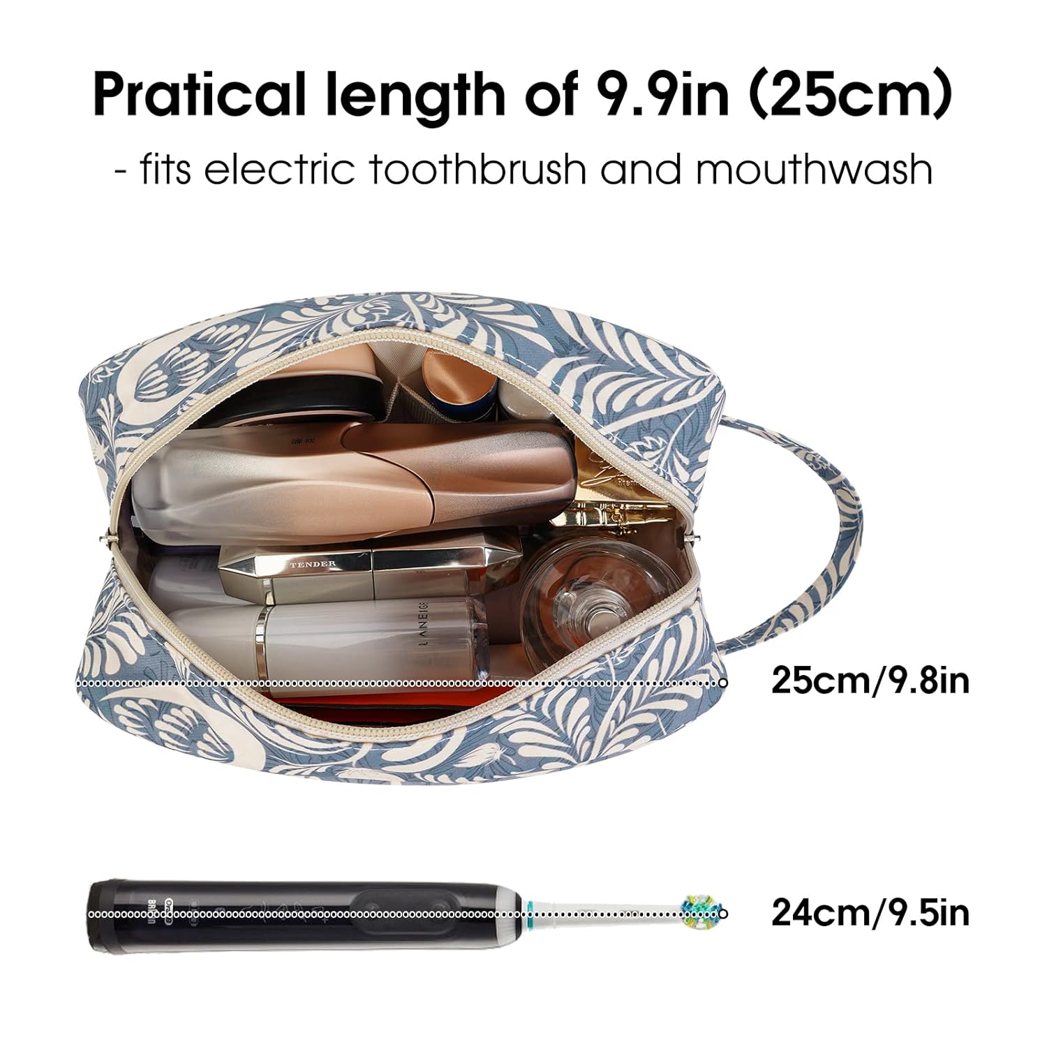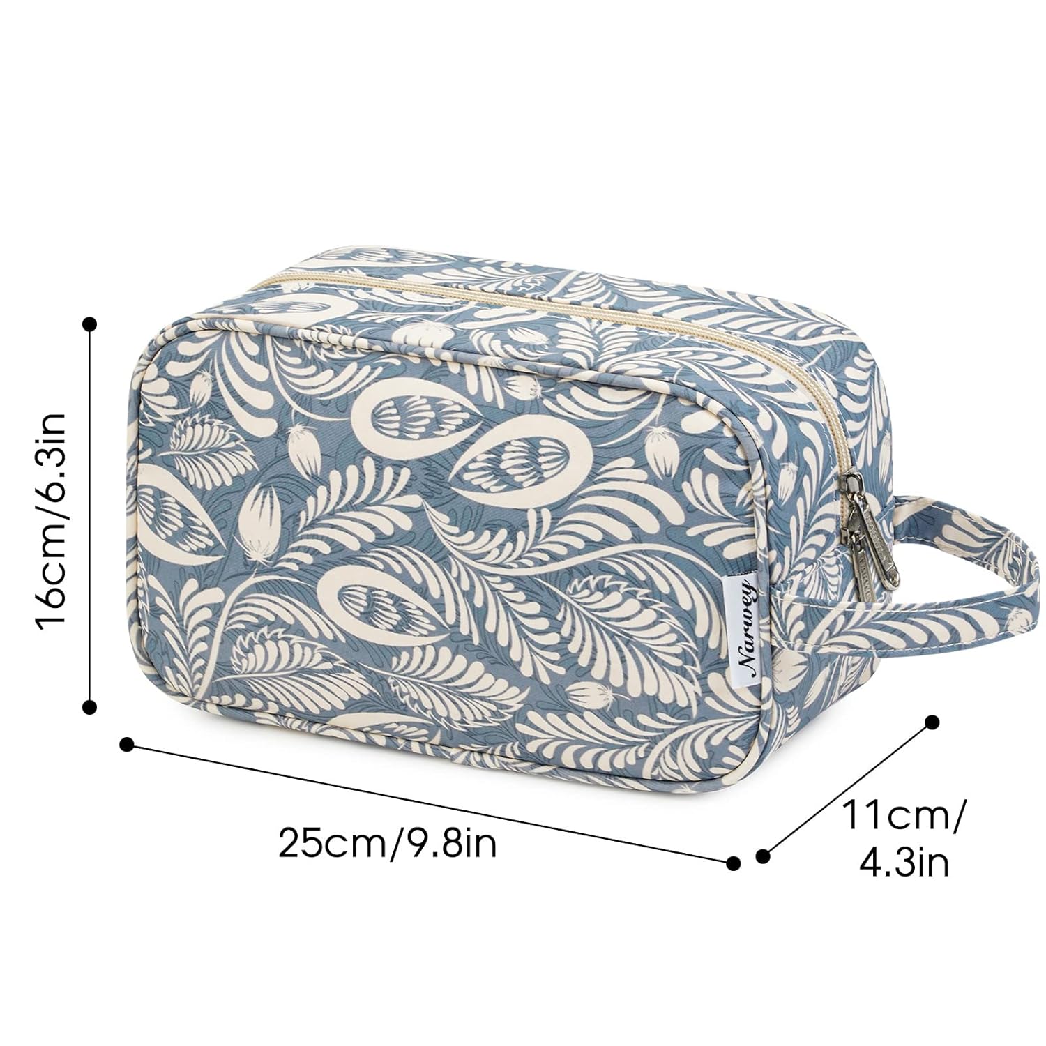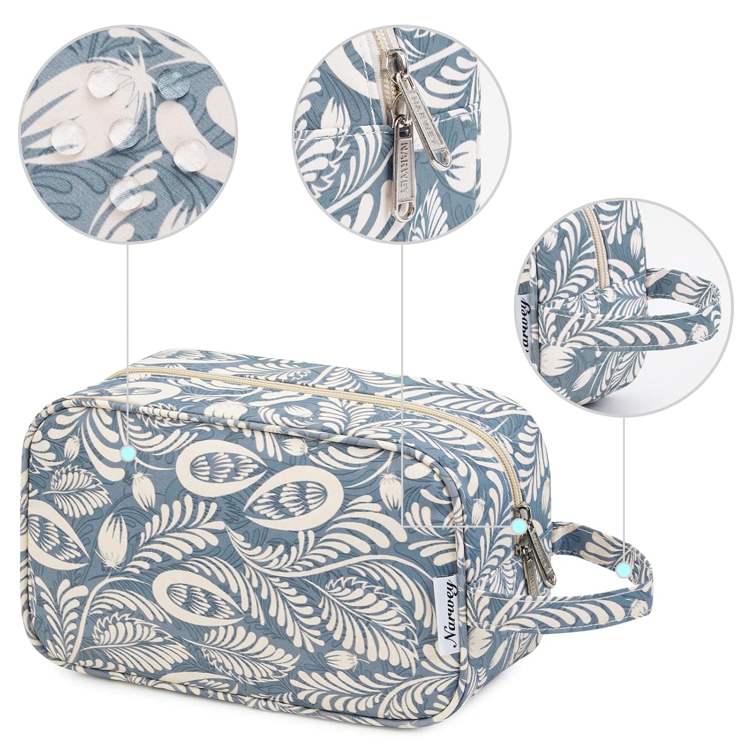 Narwey Travel Toiletry Bag for Women Traveling Dopp Kit Makeup Bag Organizer for Toiletries Accessories Cosmetics (Blue Leaf)