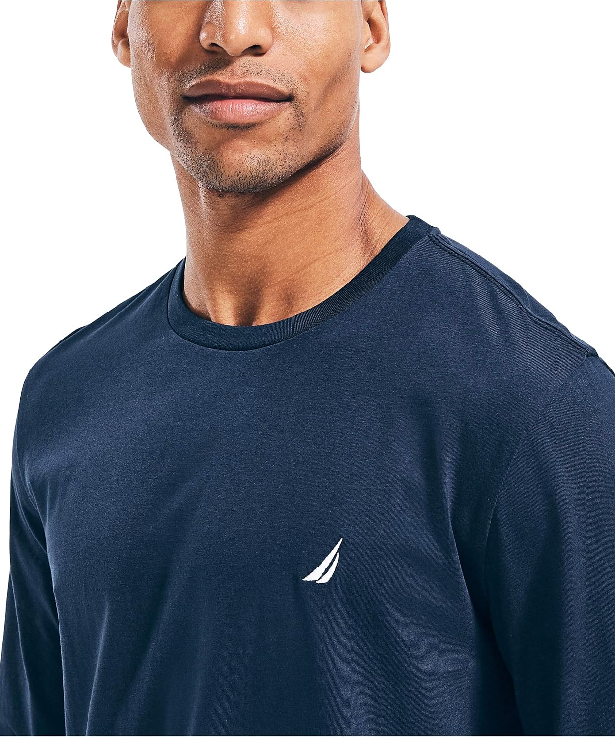 Be cool while staying warm in this soft cotton-jersey long sleeve t-shirt, featuring a ribbed collar and Nautica’s signature J-class logo.