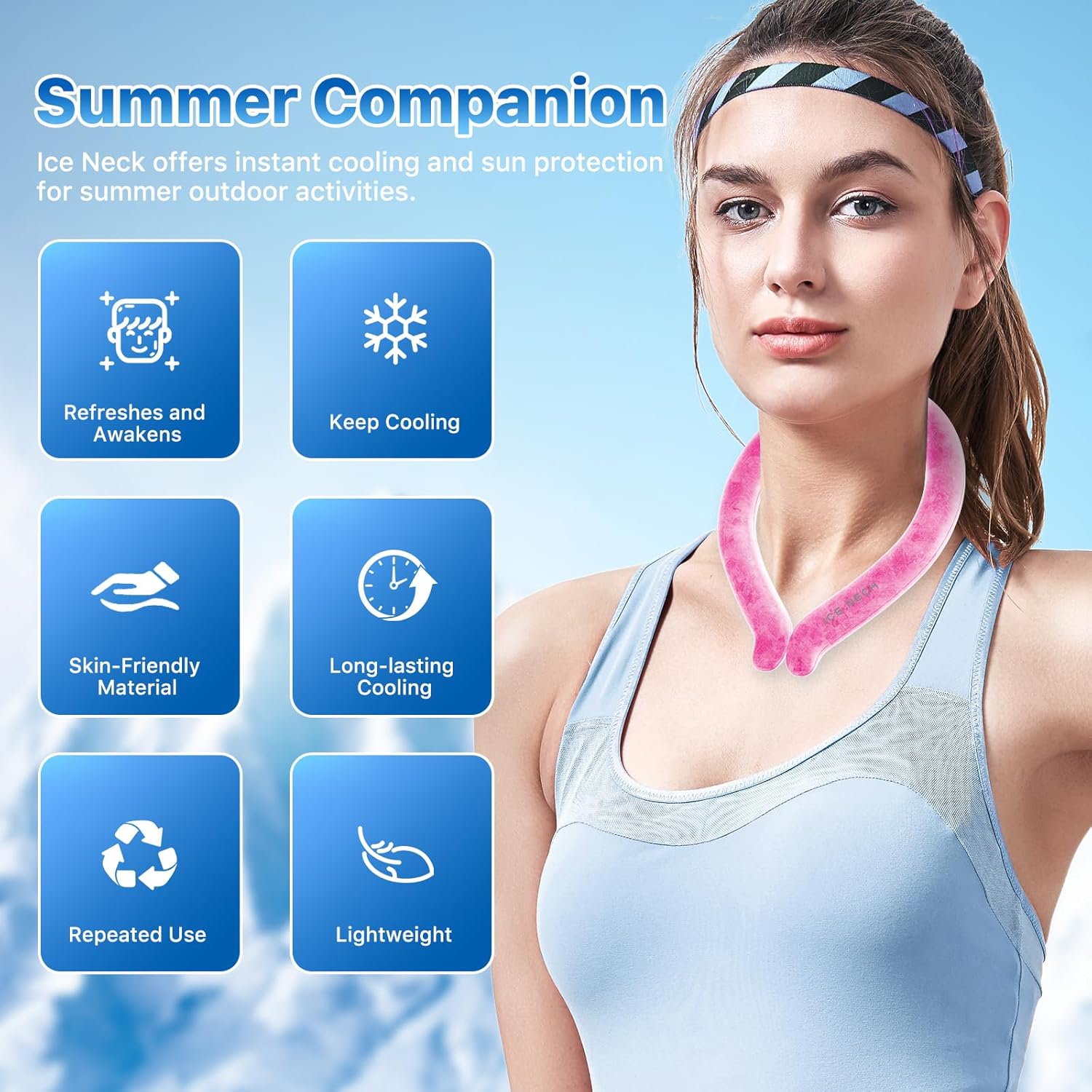 ❄Adjustable Fit: Ice ring boasts a versatile, flexible design that effortlessly contours to your neck, ensuring a snug and comfortable fit for optimal cooling performance.