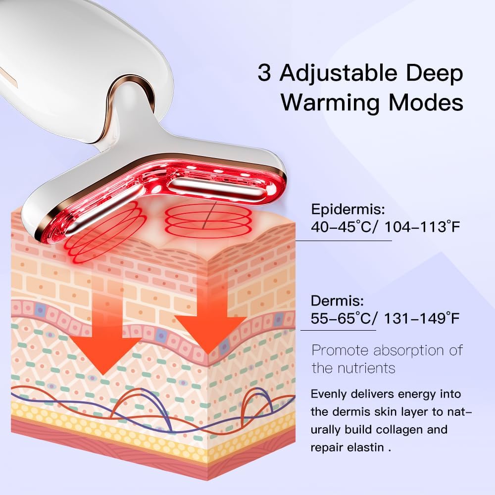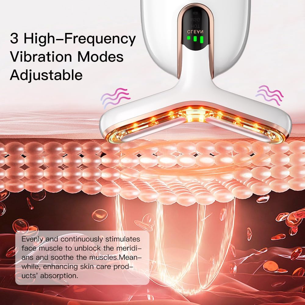 Neck Face Massager, Multifunctional Facial Massager, Face Sculpting Tool for Skin Care and Double Chin with Vibration, Thermal (White Gold)