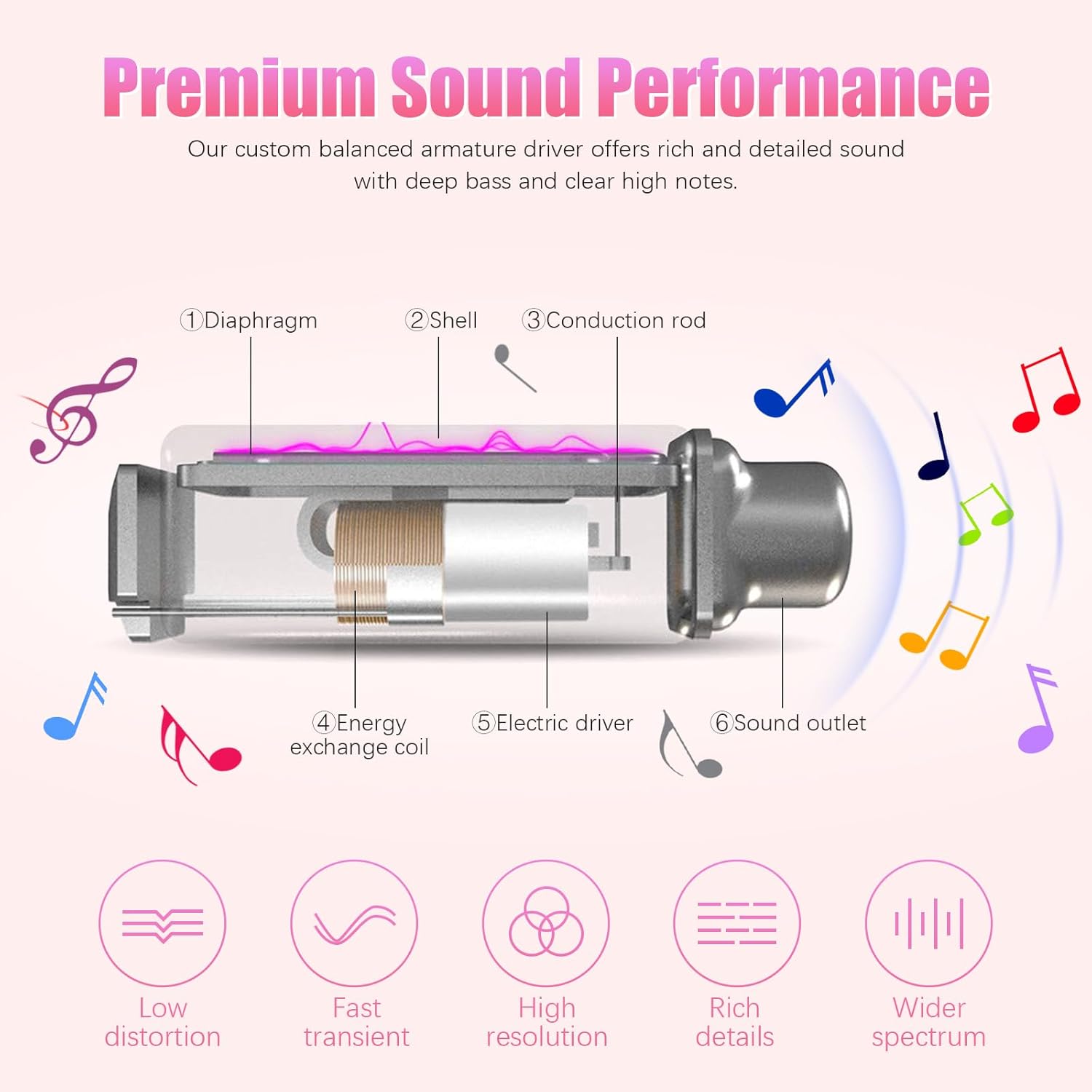 Pleasant Vivid Sound — These earbuds boast a hybrid design with a single custom-tuned balanced armature driver for each earbud, delivering powerful and vivid stereo sound with deep bass. The aluminum alloy cavity ensures stable audio output without interference from external signals.