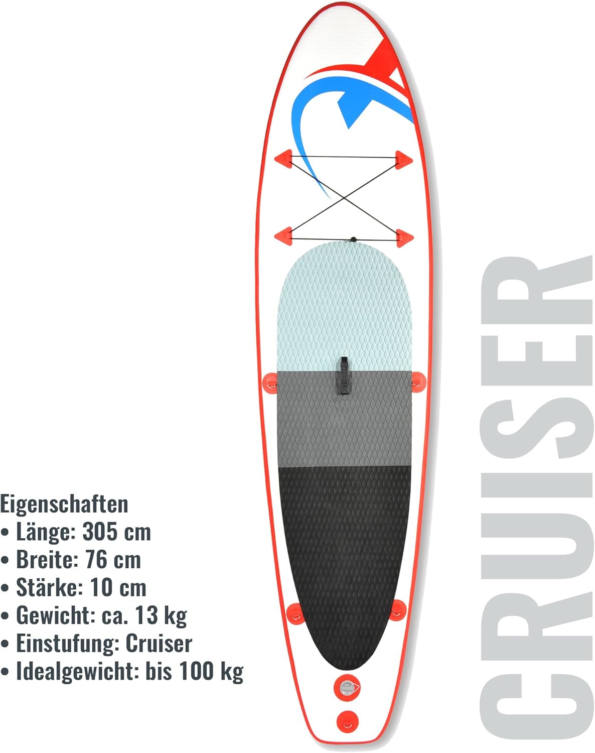 STABLE – non-slip thanks to heat-embossed EVA deck – allows for safe standing and foot comfort