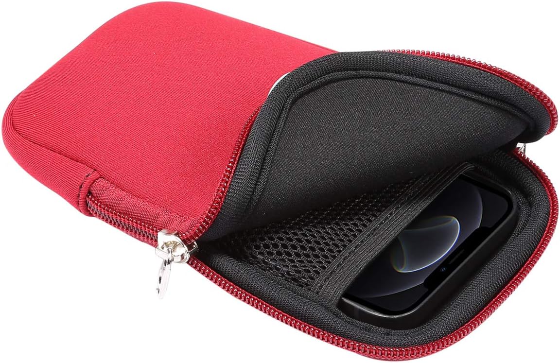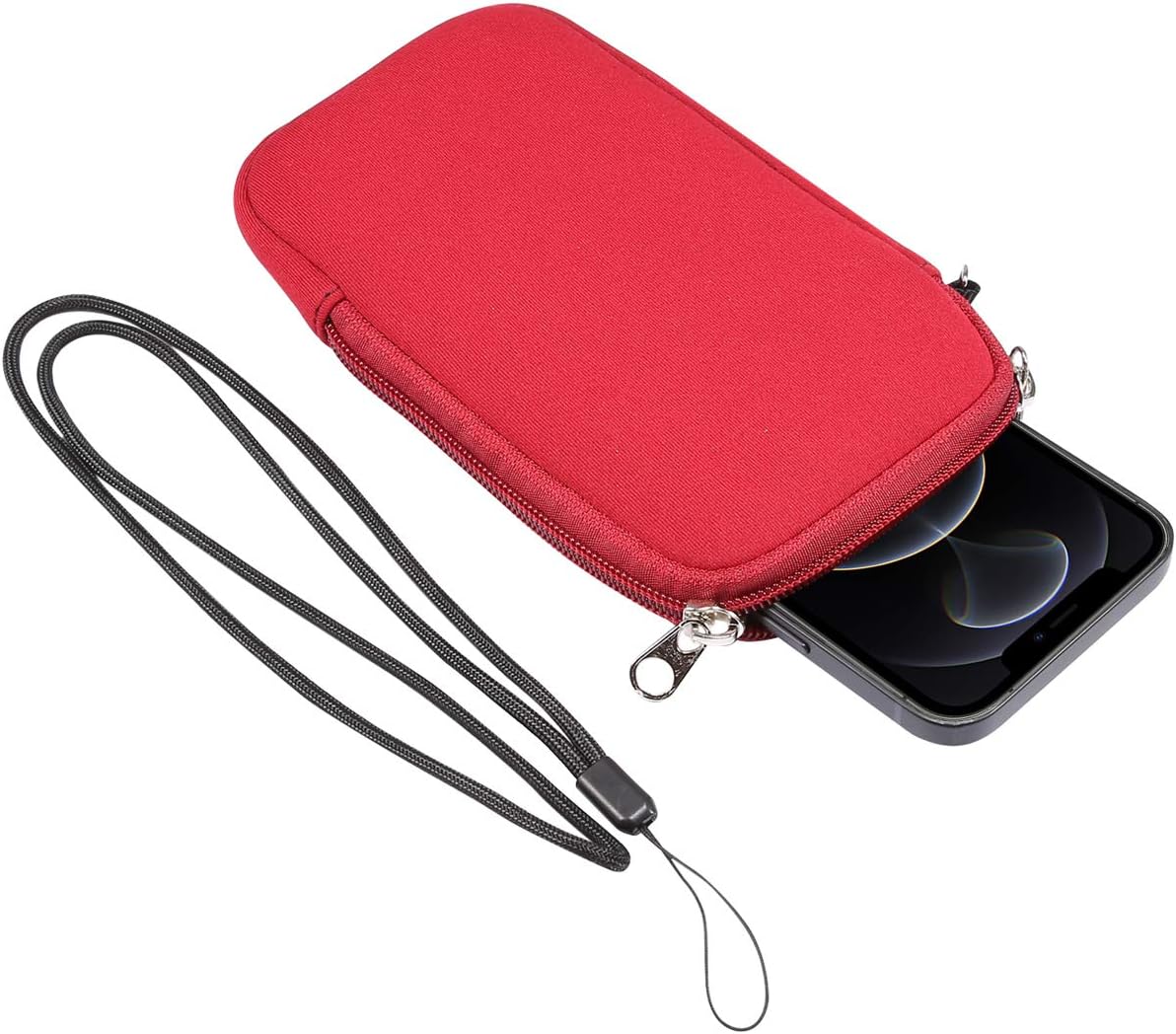 Neoprene Shock Absorbing Proof Pouch Large Cell Phone Sleeve Case Cover w Zipper/Neck Strap for iPhone 14 Plus Samsung Galaxy Note20 Ultra S22 Ultra A13 A03 A23 Moto G Power 2022 LG Stylo 6 (Red)