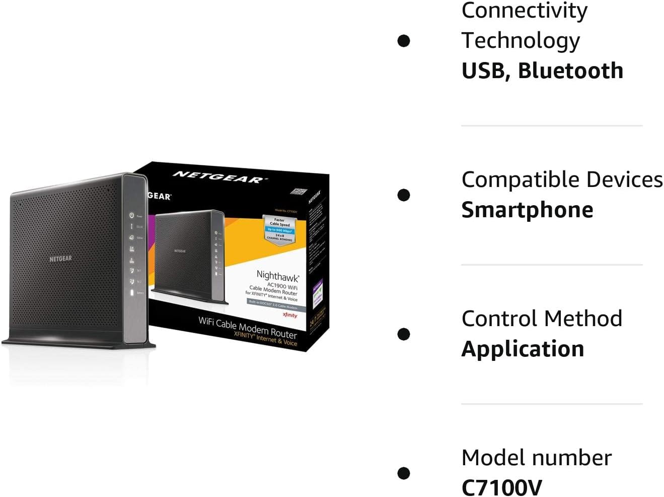 NETGEAR Nighthawk AC1900 (24×8) DOCSIS 3.0 WiFi Cable Modem Router Combo For XFINITY Internet & Voice (C7100V) Ideal for Xfinity Internet and Voice services (Renewed)