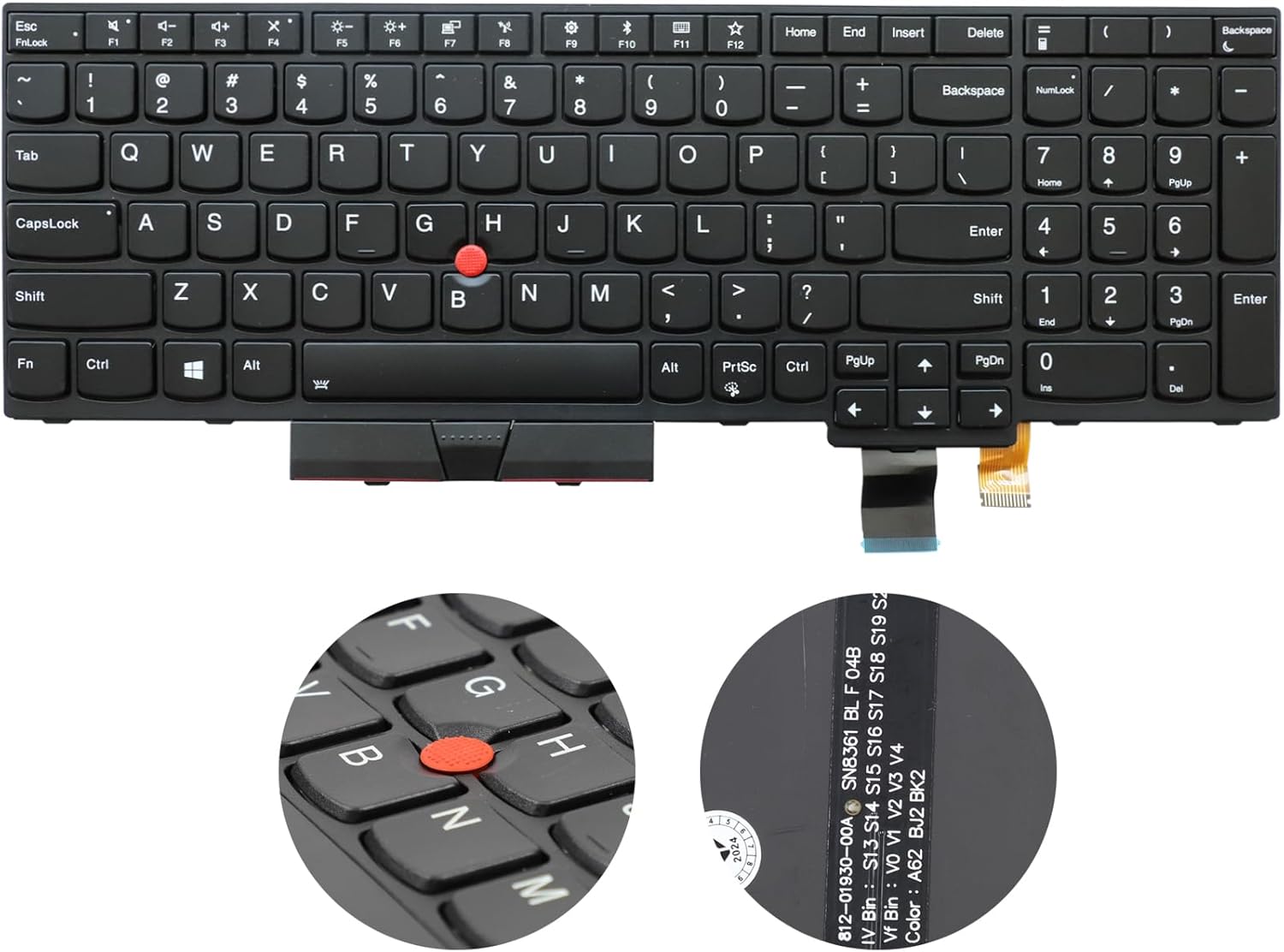 New Backlit Keyboard with Pointer Replacement for Lenovo ThinkPad T570 T580 P51s P52s Series Laptop US Layout Backlight and Pointer Black Frame 01EN928 SN20M07806 01ER500 SN20M07847
