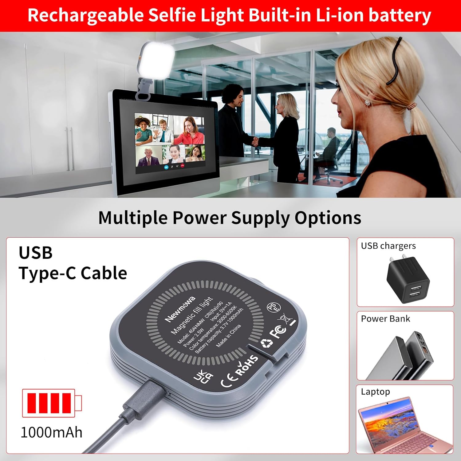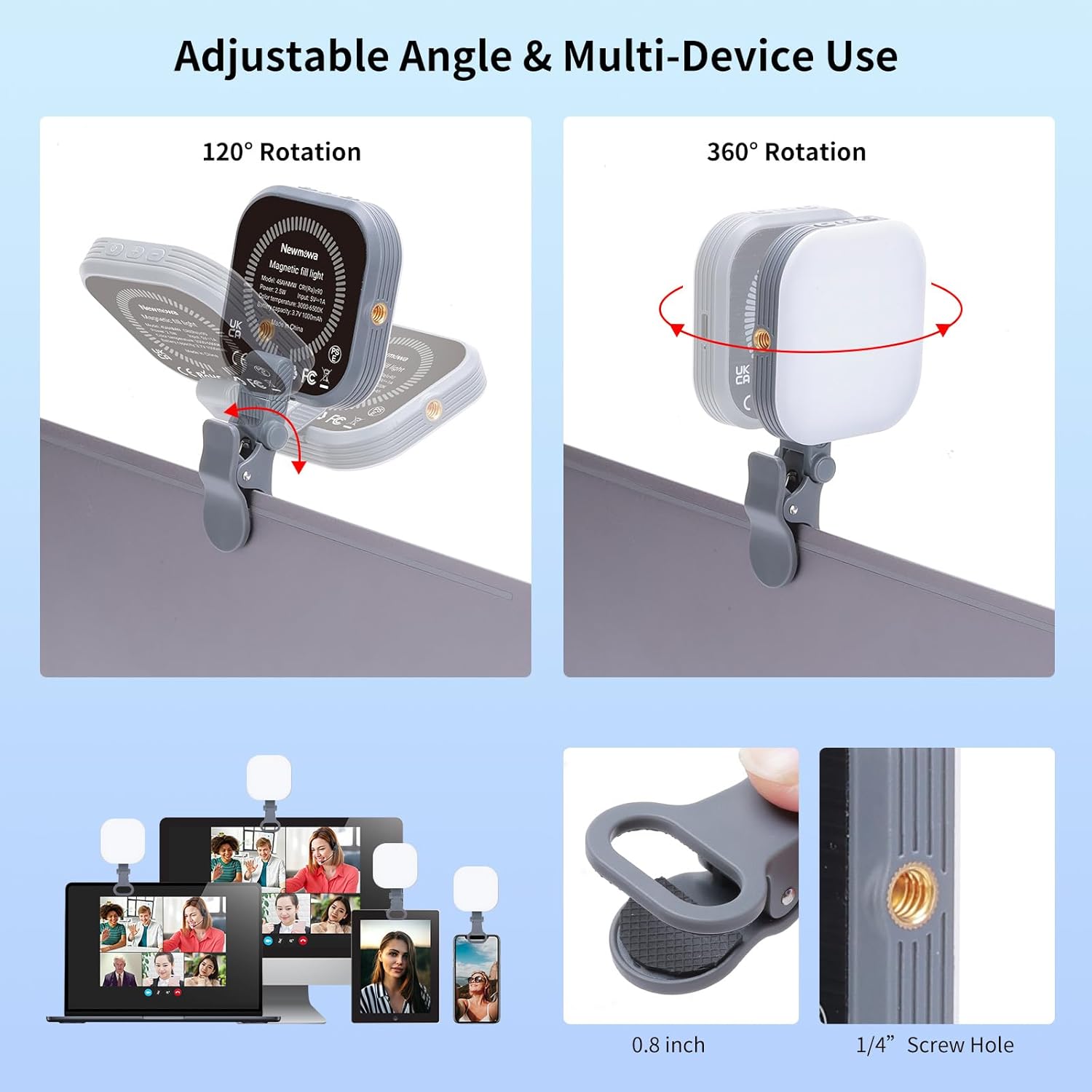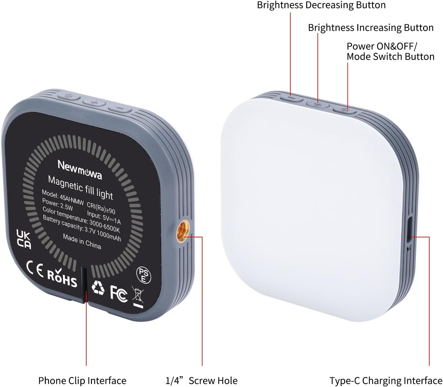 Newmowa Magnetic Phone Selfie Light – Rechargeable Clip on Mini Video Light for Phone/Laptop/Camera,3 Light Mode Fill Light for Selfie,Makeup,Video Conference,TikTok,Compatible with iPhone and Android