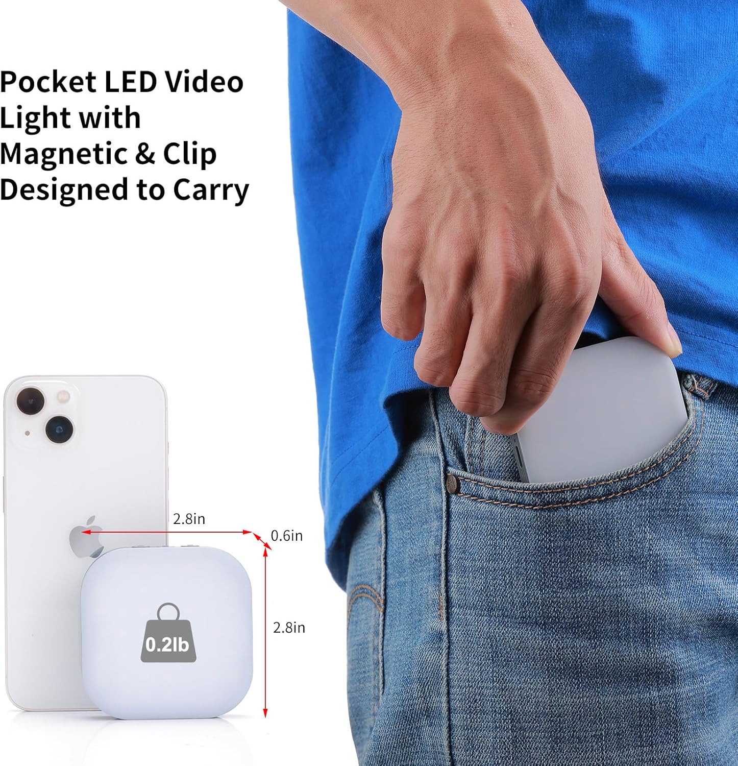 【Pocket Size Portability】This slim and portable selfie light will brighten up your appearance so you look your best in front of the webcam. Size: 2.8*2.8*0.6 in, weight only 0.2lb, super lightweight design lets you carry it wherever you go. Its compact and lightweight design easily fits in your bag, pocket, purse, or backpack whether you’re at home, at office, or travel. It always ready to capture the perfect shot. This magnetic phone light will be a necessary fashionable accessory for travel.