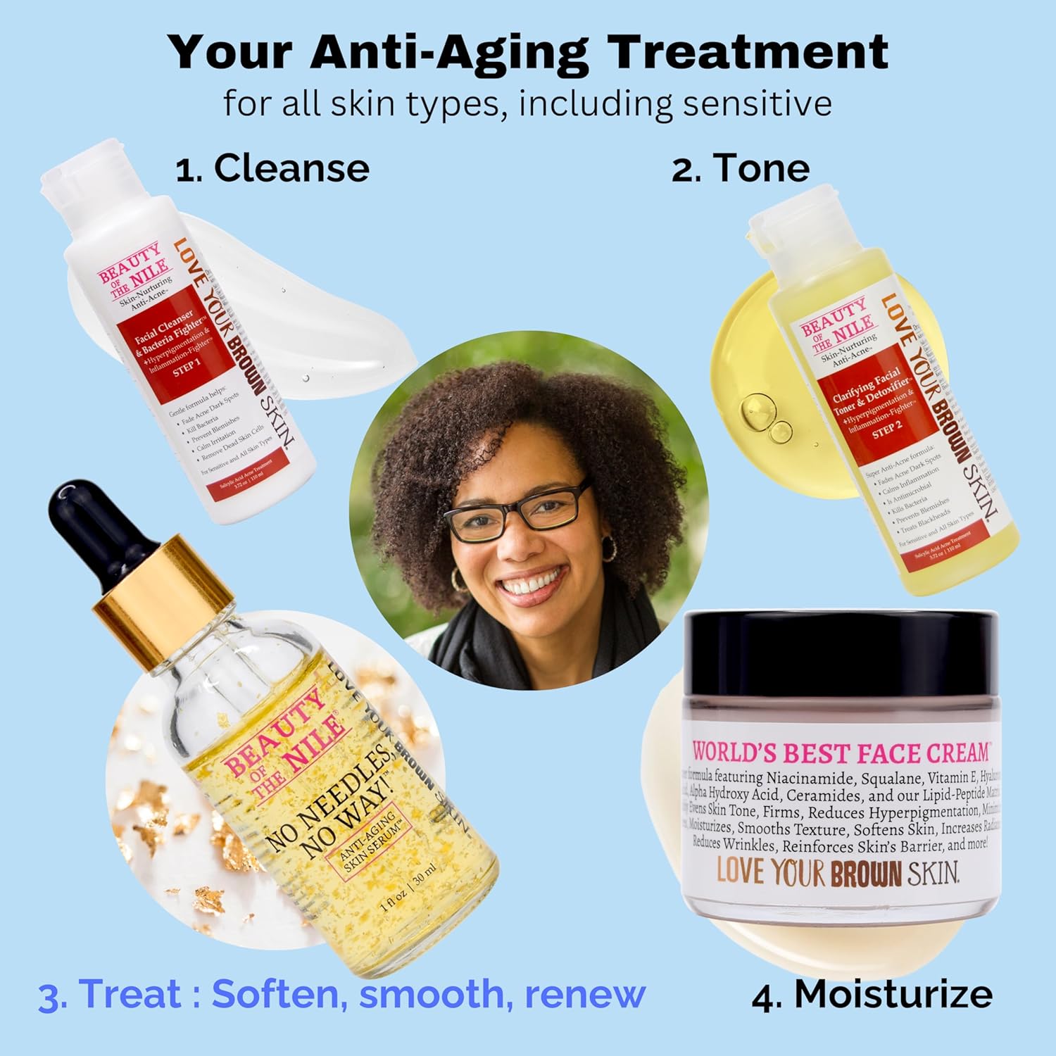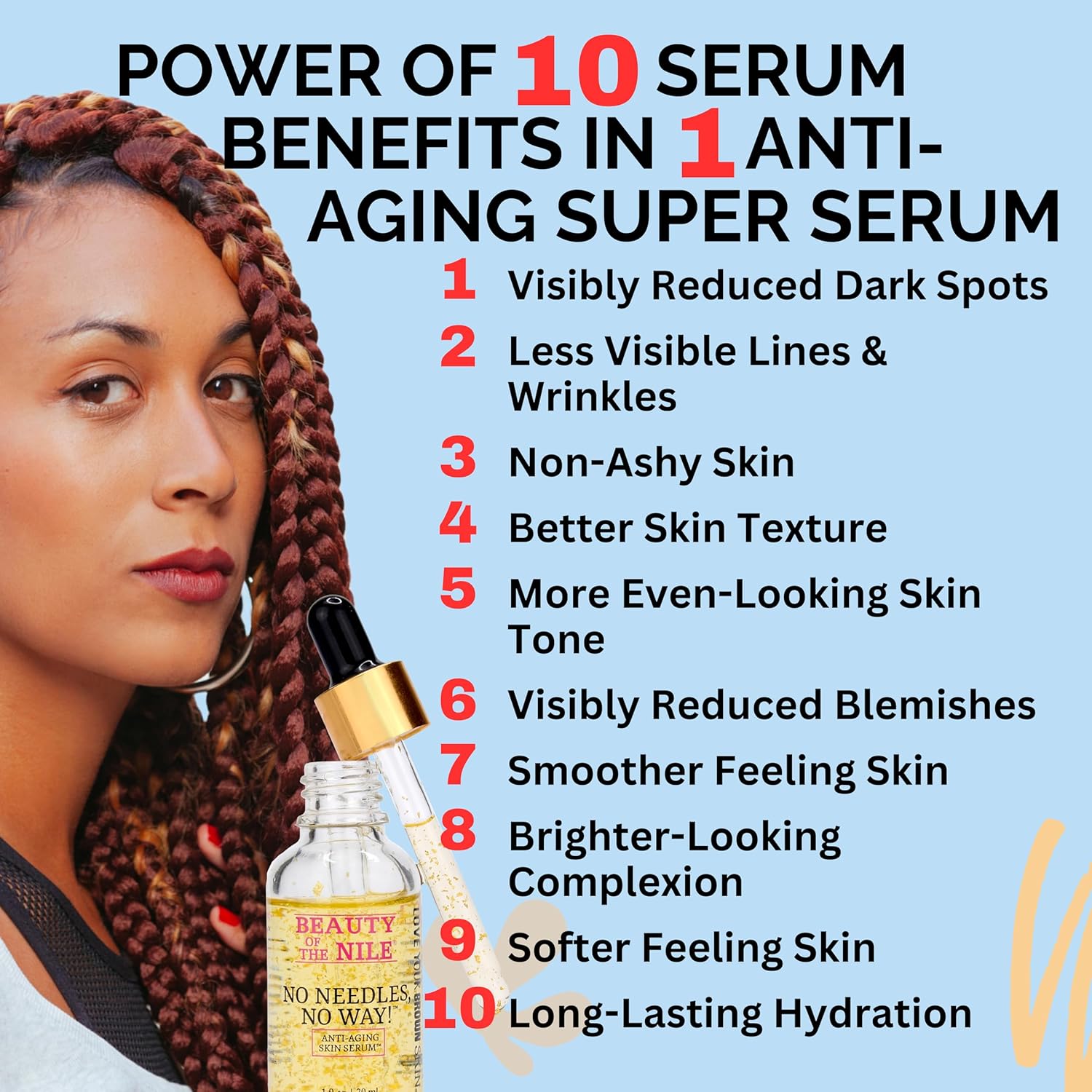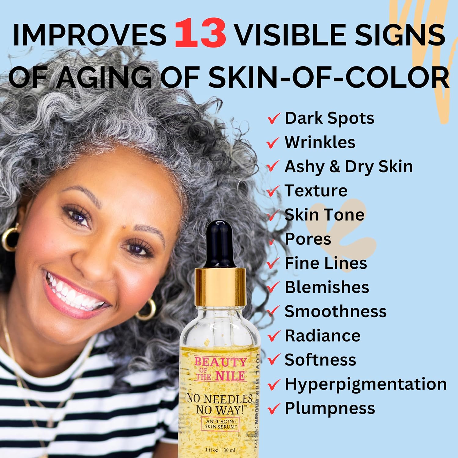 No Needles, No Way!™ Anti Aging Serum for Skin-of-Color, Wrinkles Dark Spots Hydrate Smooth Even Tone Retinol Hyaluronic Acid Beauty of the Nile® 1 Oz