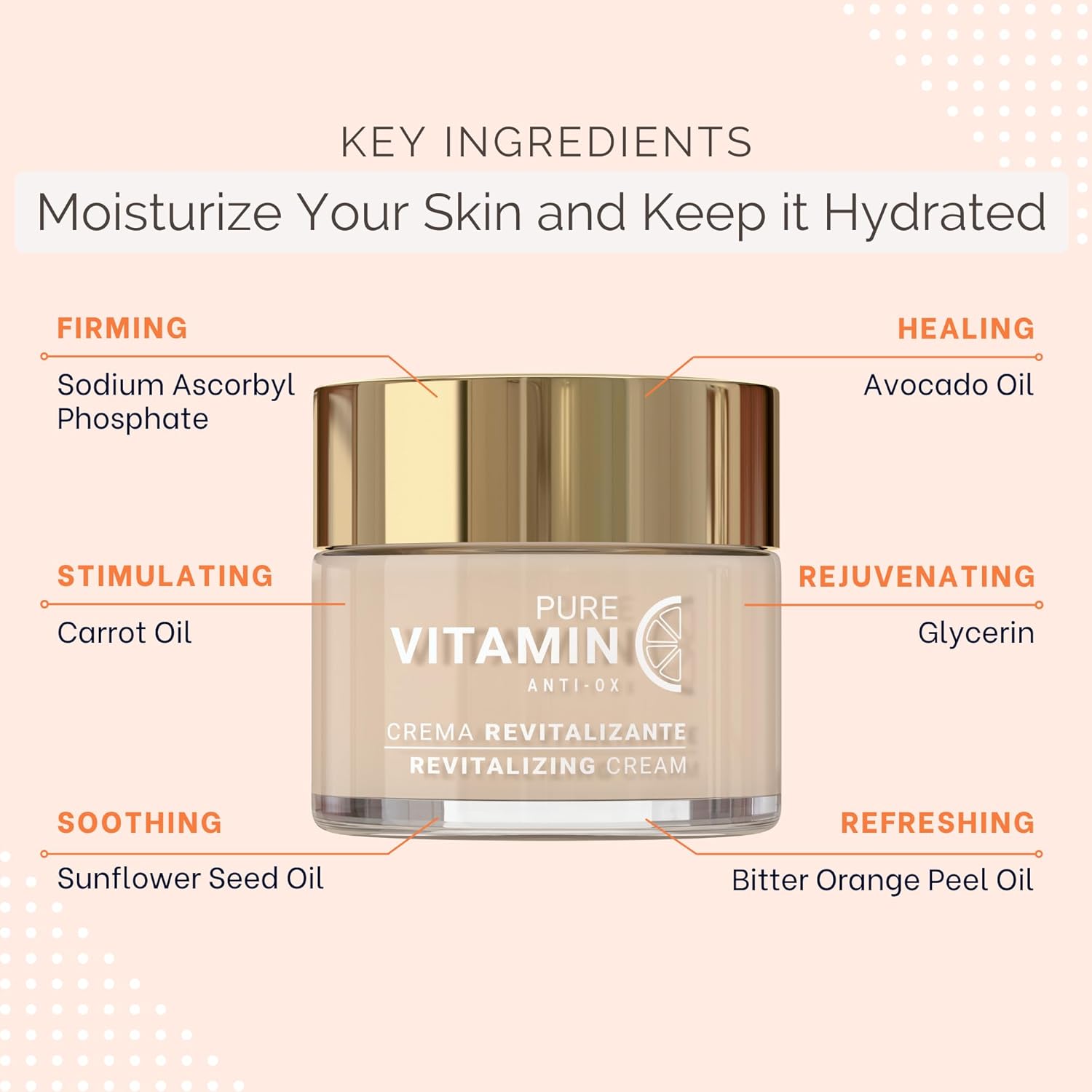 HYDRATING CREAM: Our vitamin C cream contains sodium ascorbyl phosphate, a stable form of vitamin C, and glycerin, a natural moisturizer found in our skin. This combination effectively maintains a healthy lipid balance, protects against irritation and inflammation, restores the skin barrier, and delivers exceptional hydration benefits.