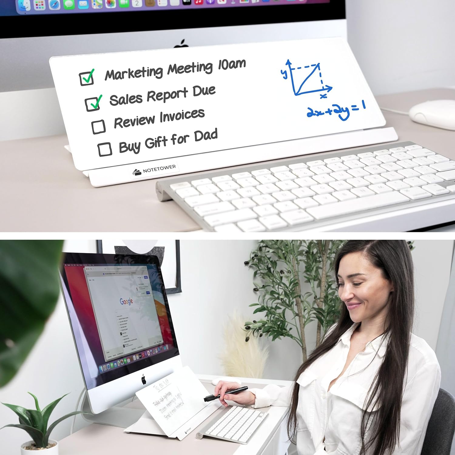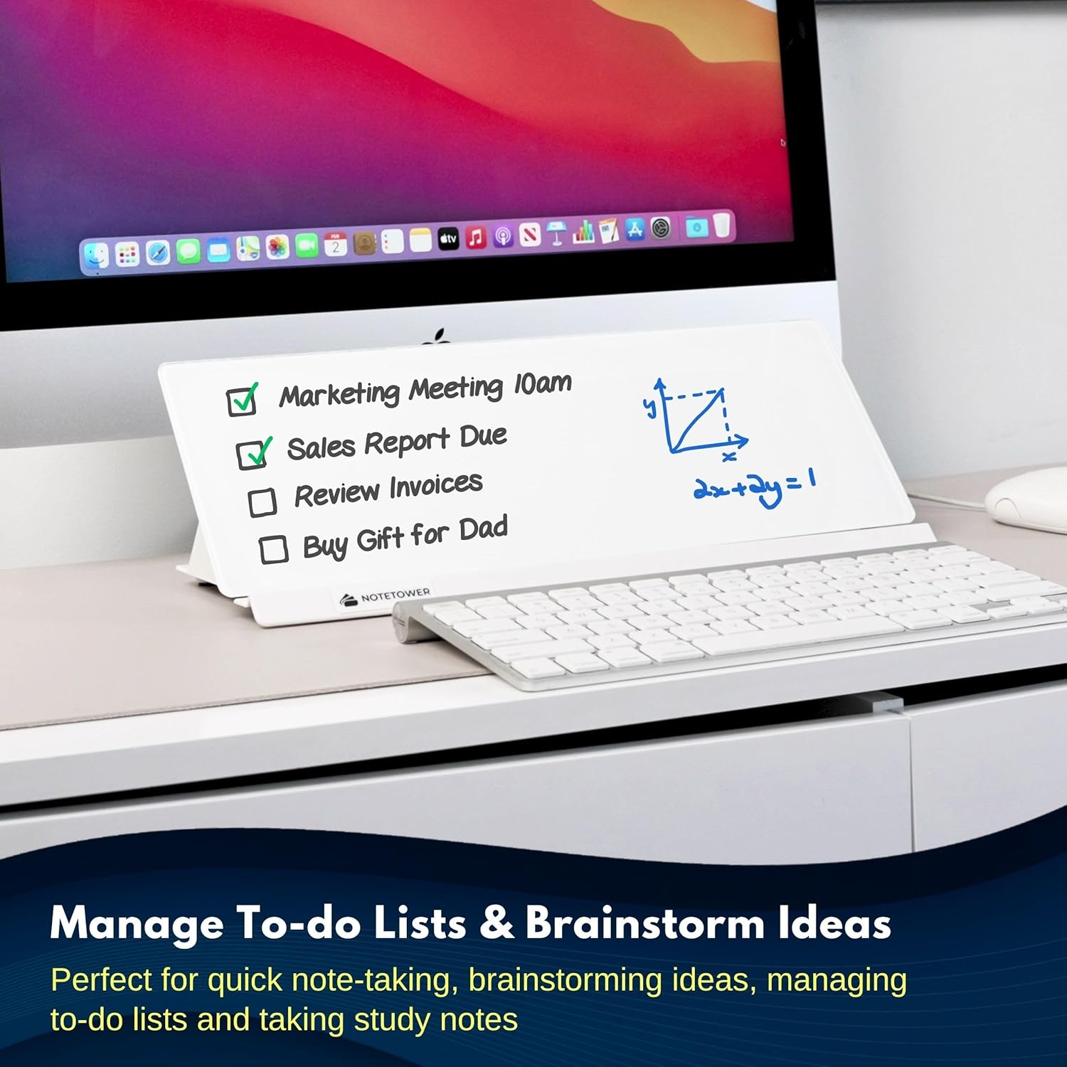 Note Tower Desktop Whiteboard – Dry Erase Glass White Board for to-do List, Memo Notepad, Phone & Tablet Stand, Desk Organizer Accessories Storge Buddy for Office, Home, School Supplies