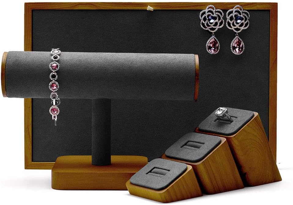 Oirlv Solid Wood Hovering T-Bar Jewelry Display Stand Watches Bracelet Necklace Bangle Holder Jewelry Organization(Grey)