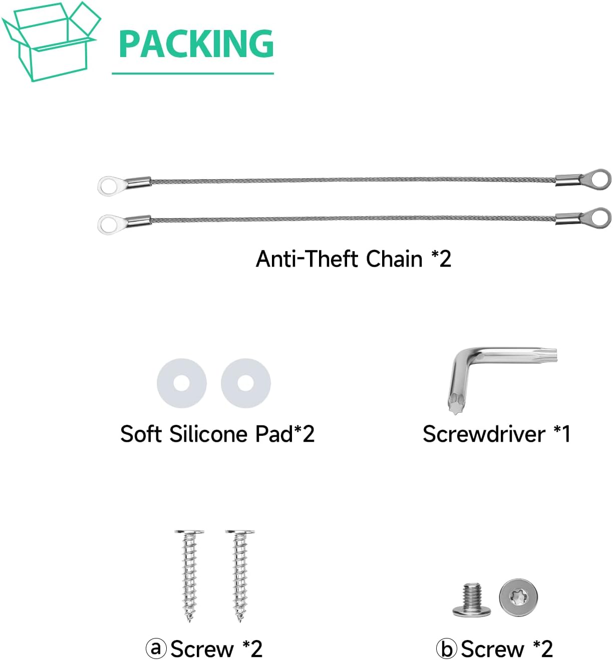 PACKAGE INCLUDED: Steel wire rope*2, high-quality screws*4, special screwdriver*1.