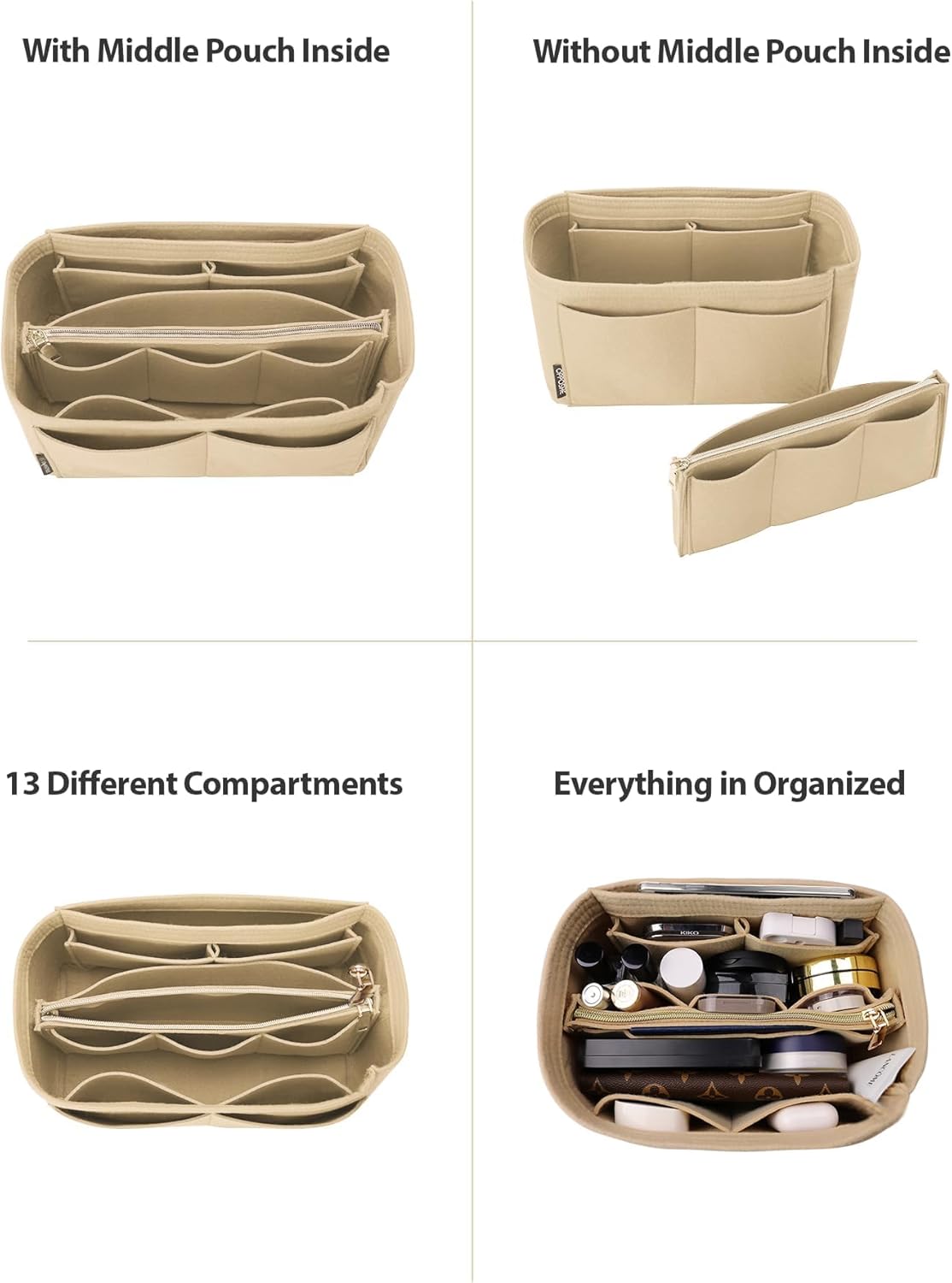 OMYSTYLE Purse Organizer Insert for Handbags, Felt Bag Organizer for Tote & Purse, Tote Bag Organizer Insert with 5 Sizes, Compatible with Neverful Speedy and More