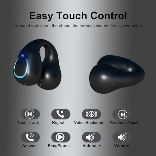 Open Ear Bone Conduction Headphones Wireless Earbuds Bluetooth 5.3 Clip On EarBuds with LED Display Charging Case 60 Hours Playtime Earphones IPX7 Waterproof for Running Walking, Workout(Black)