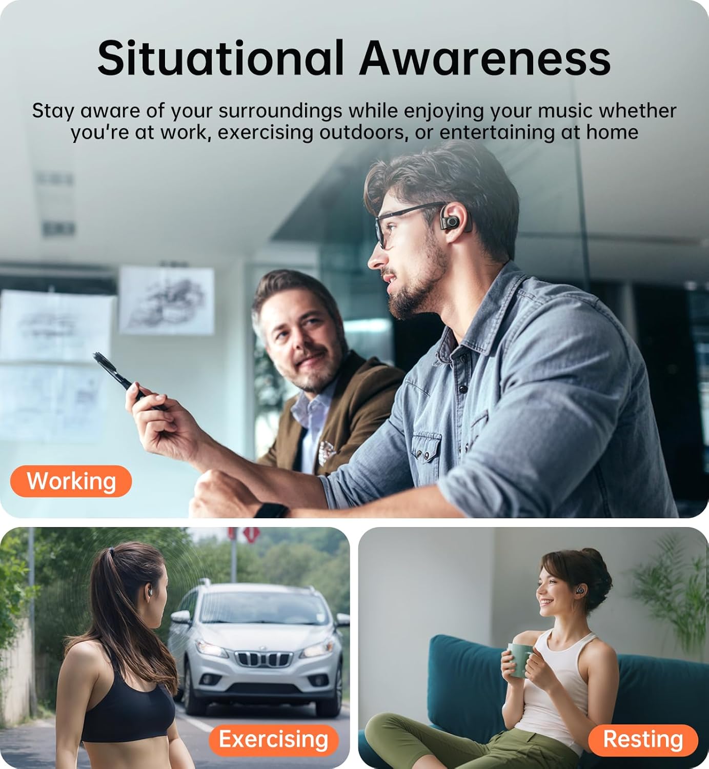 Enjoy Music, Stay Aware of Your Surroundings. Sit outside the ear canal, light and comfy, perfect for extended wear.