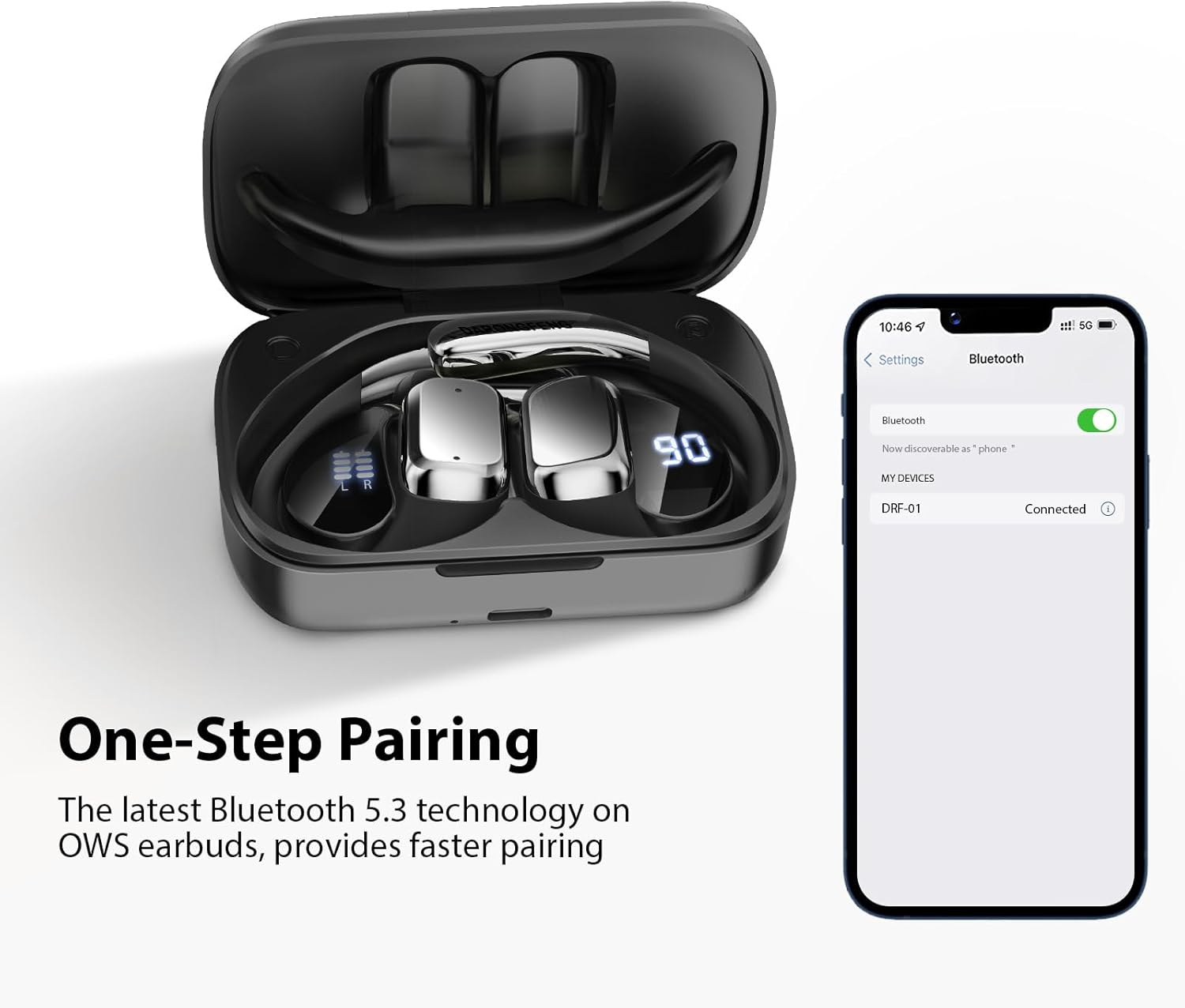 Open Ear Wireless Bluetooth Headphones, Pain-Free Air Conduction Ear Buds with LED Digital Display Charging Case, Sweat Resistant for Running, Safe Driving, and Extended Daily Use