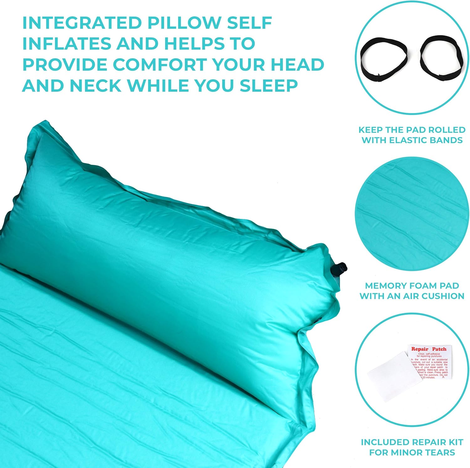 OSAGE RIVER Self Inflating Sleeping Pad with Built-in Pillow, Compact Memory Foam Sleep Mat, Camping Air Mattress for Tent, Travel, Backpacking, or Hiking, Mint Green