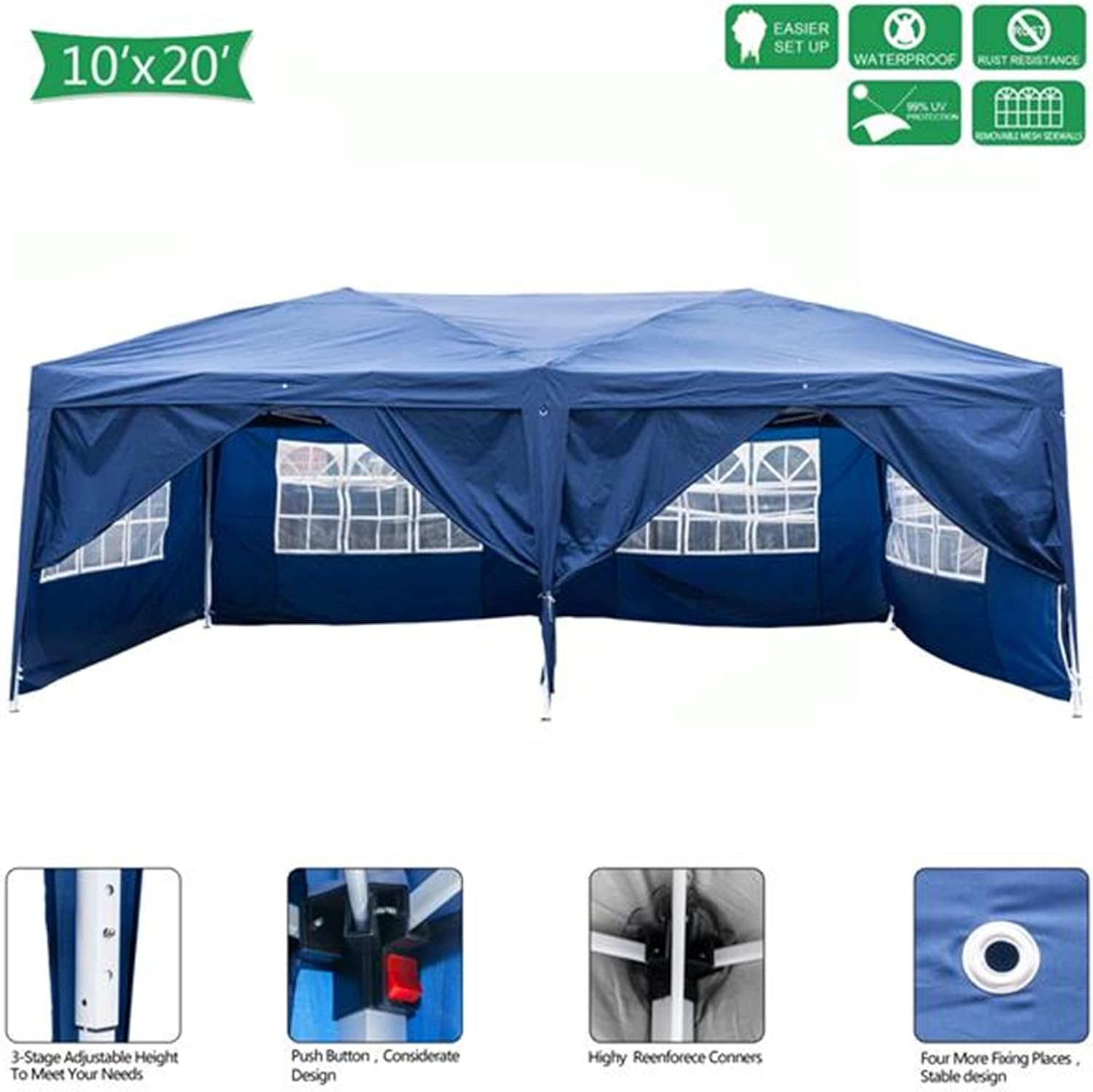 Outdoor Canopy Tent Patio Camping Gazebo Shelter Pavilion Cater Party Wedding BBQ Events Tent w/Removable Sidewalls (3X6M with Four Windows 6 sidewalls, Blue)