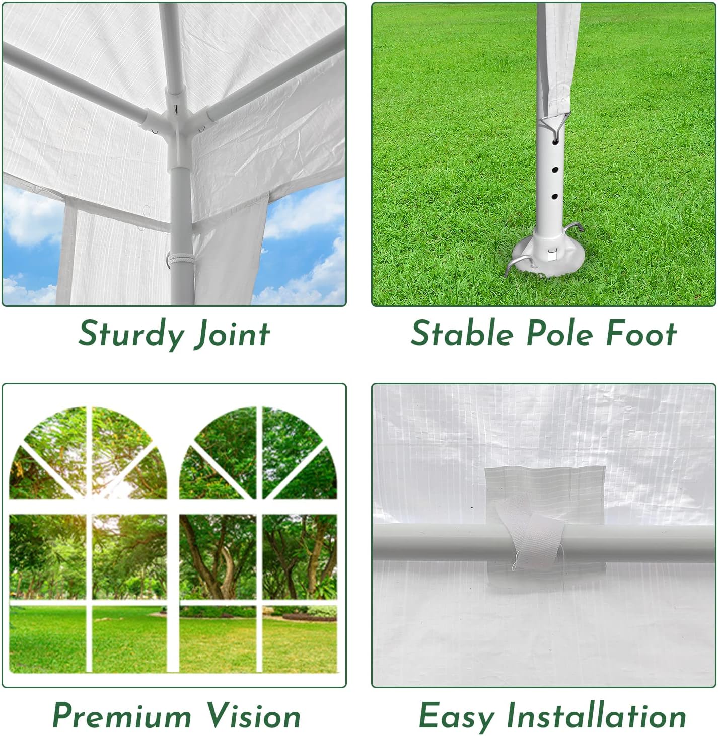 【HIGH-QUALITY MATERIALS】This party tents can hold about 10 people, durable water proof polyethylene cover, rust & corrosion resistant powder coated steel framework.
