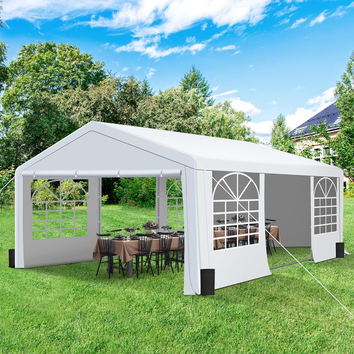 Outdoor Heavy Duty Party Tent Large Canopy Wedding Event Shelter Carport with Removable Sidewalls & 4 Sand Bags for Patio Outdoor Garden Events, White (20×20 FT)