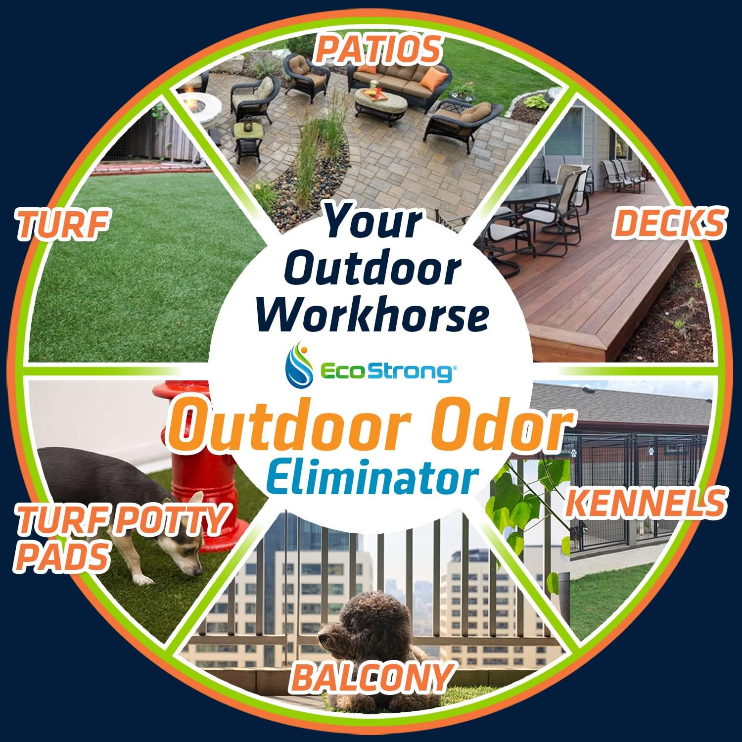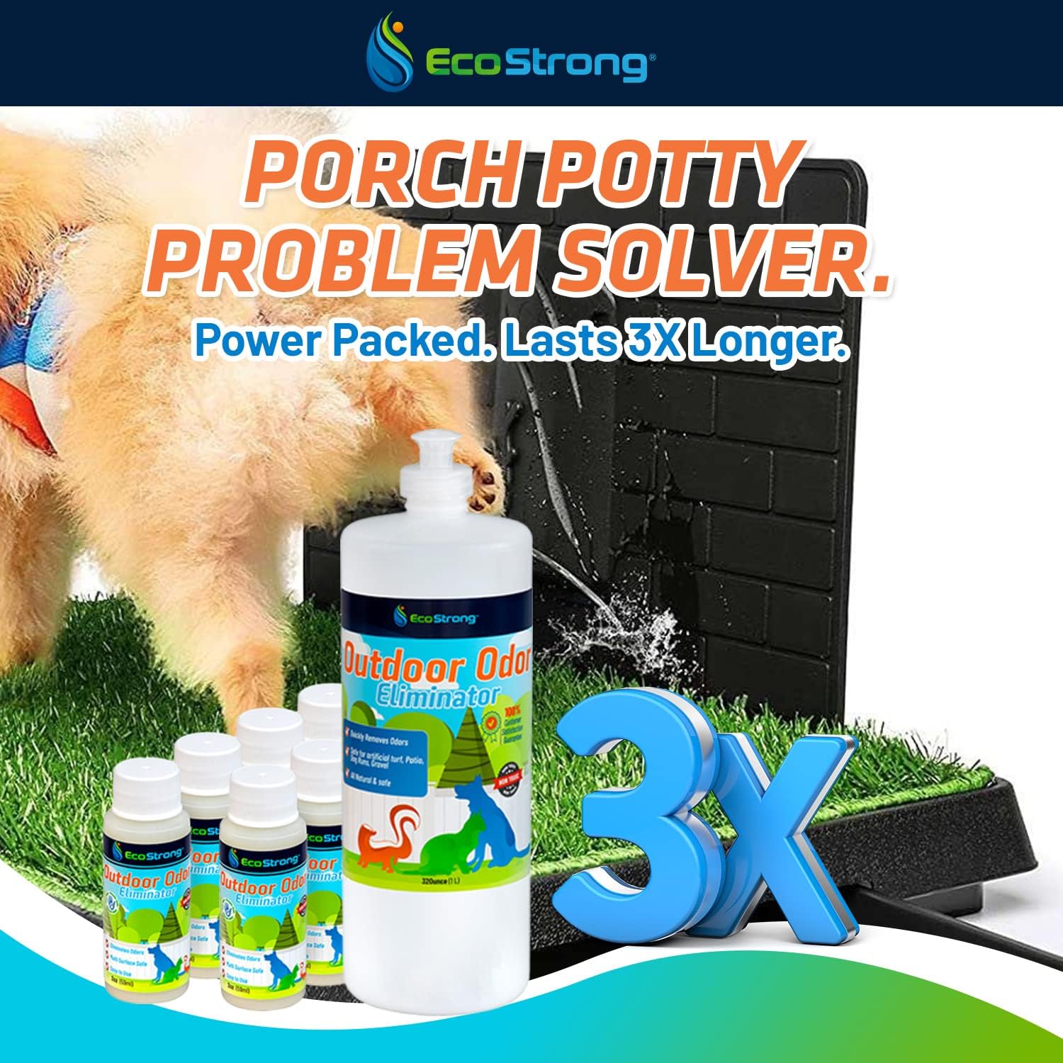 Multi-Surface Safe: This natural professional strength formulation does not contain any harsh chemicals and is safe for use around plants and on grass. Nasty smells on dirt, driveways, dog runs, gravel, patio furniture, and more are no match for Eco Strong.