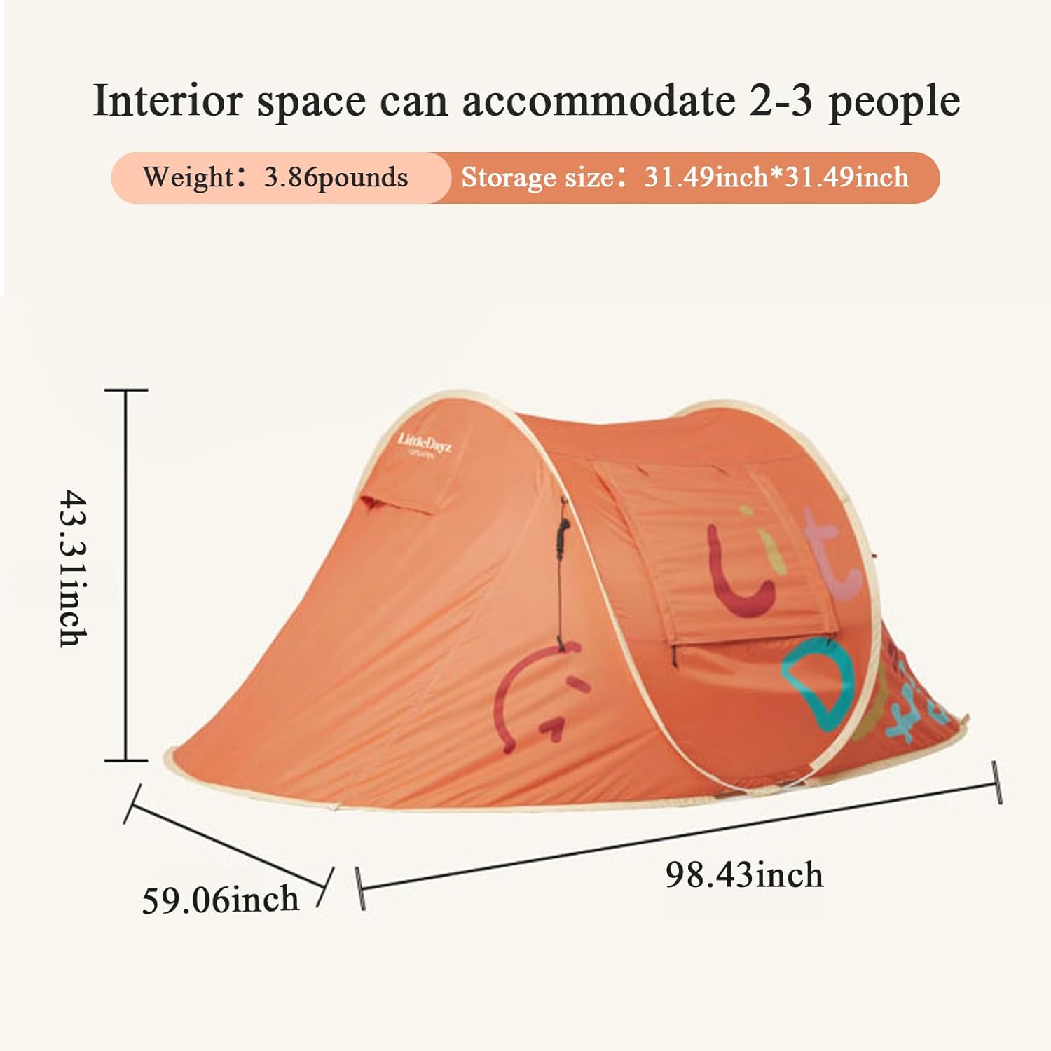 Spacious space:Pop-up tent length 200* width 150* height 110cm,camping tent can accommodate 2-3 people,used at the same time,Popup tent can be used for camping,parks,beaches and other outdoor occasions,indoor children can play in the tent,suitable for reading. As an evacuation place for naps or disasters.