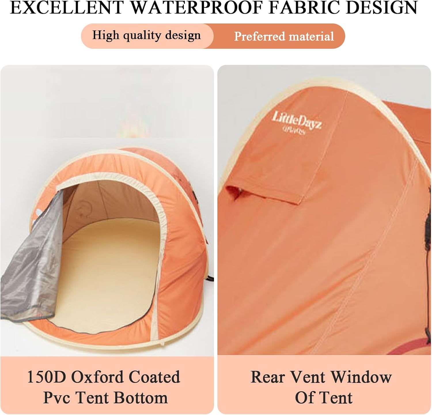 Good performance:Outdoor instant camping tent,150 Oxford waterproof cloth,UV protection,UPF40+,both sides can be freely opened and closed insect mesh Windows,maintain good ventilation, durability and tear resistance.