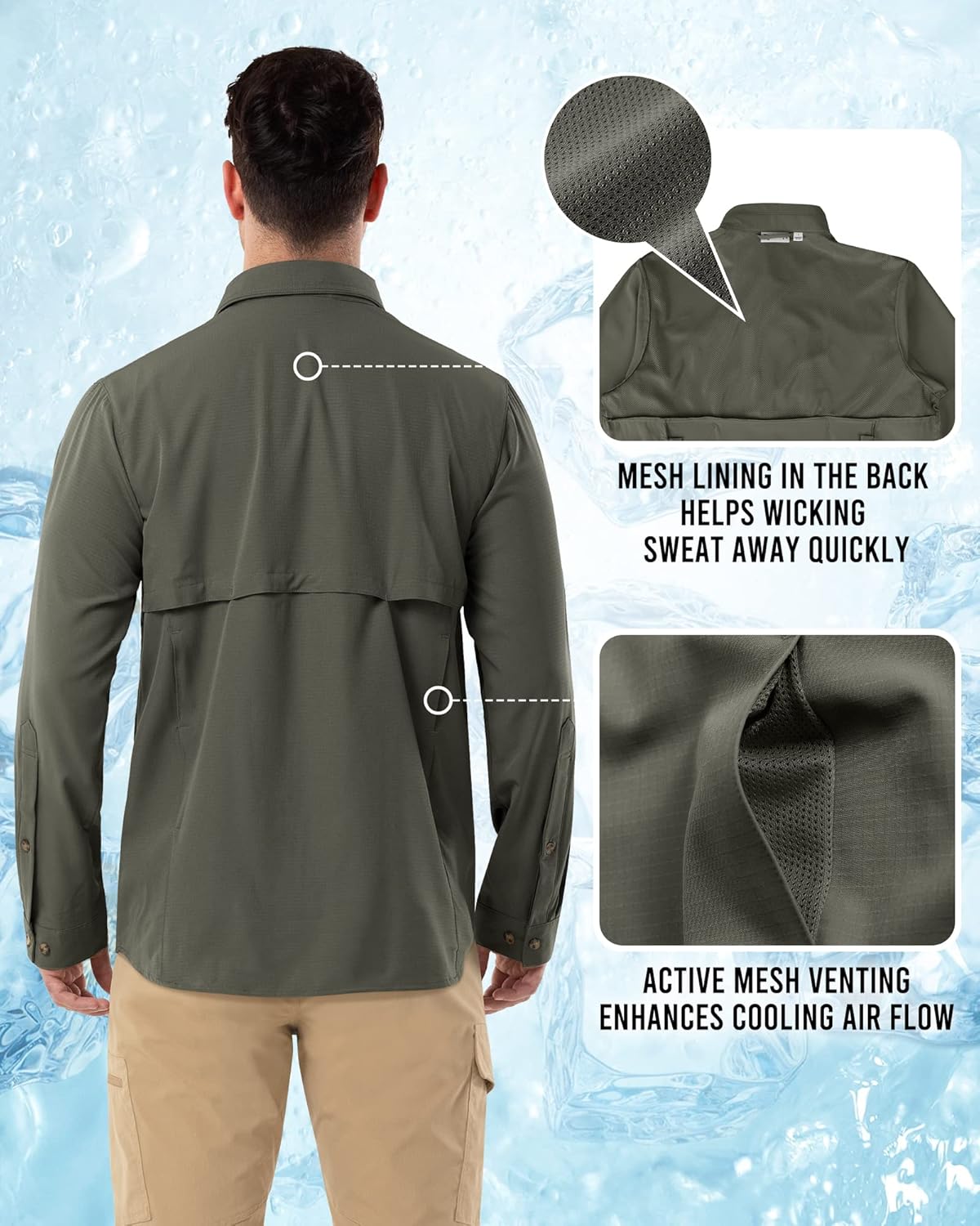 Outdoor Ventures Men’s Long Sleeve Hiking Shirt UPF 50 UV Sun Protection Shirt Cooling Quick Dry for Travel Fishing Safari