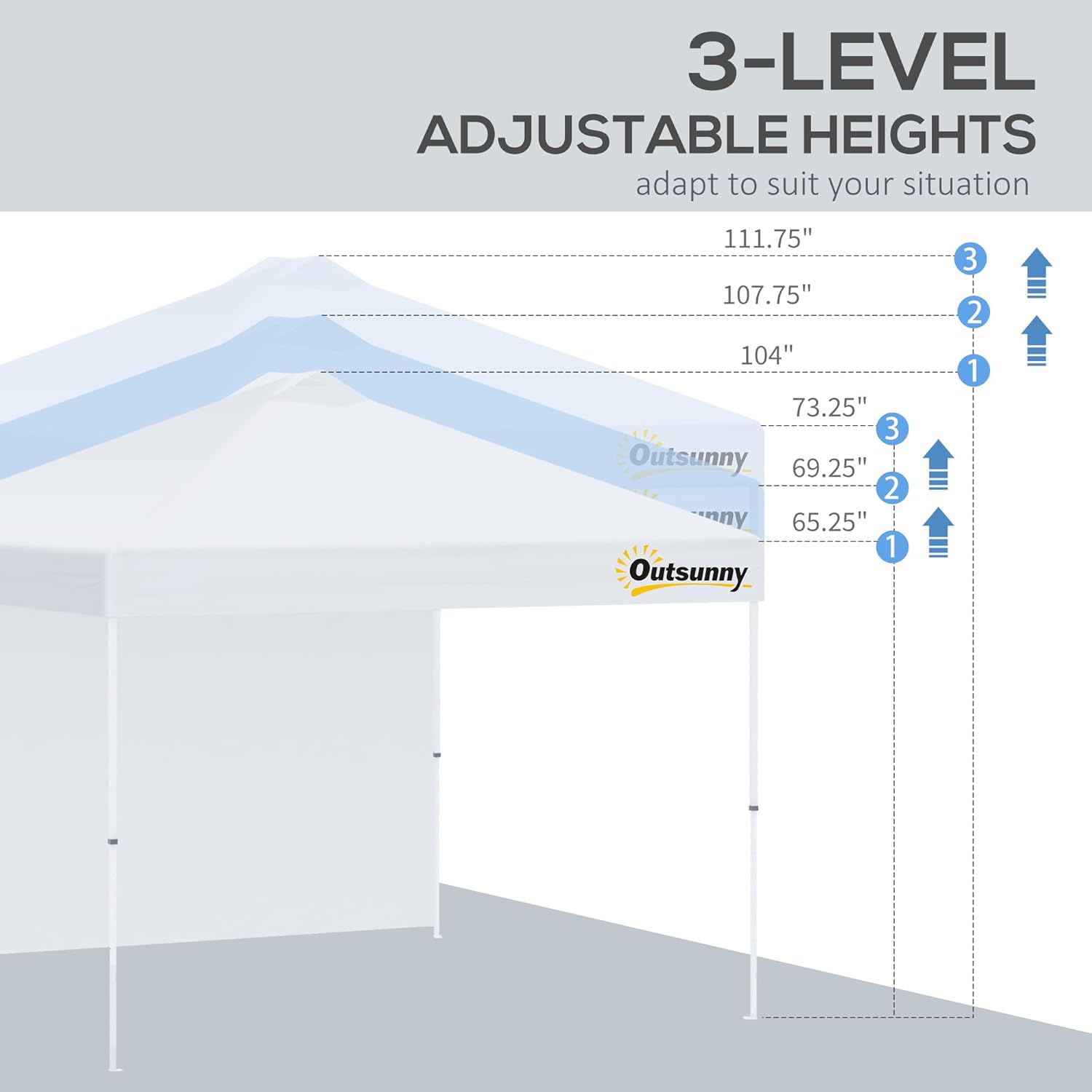 Outsunny 10′ x 10′ Pop-Up Canopy Tent with 1 Removable Sidewall, Commercial Instant Sun Shelter, Tents for Parties with Wheeled Carry Bag for Outdoor, Garden, Patio, White