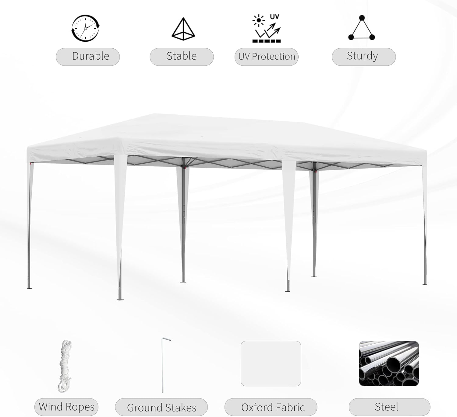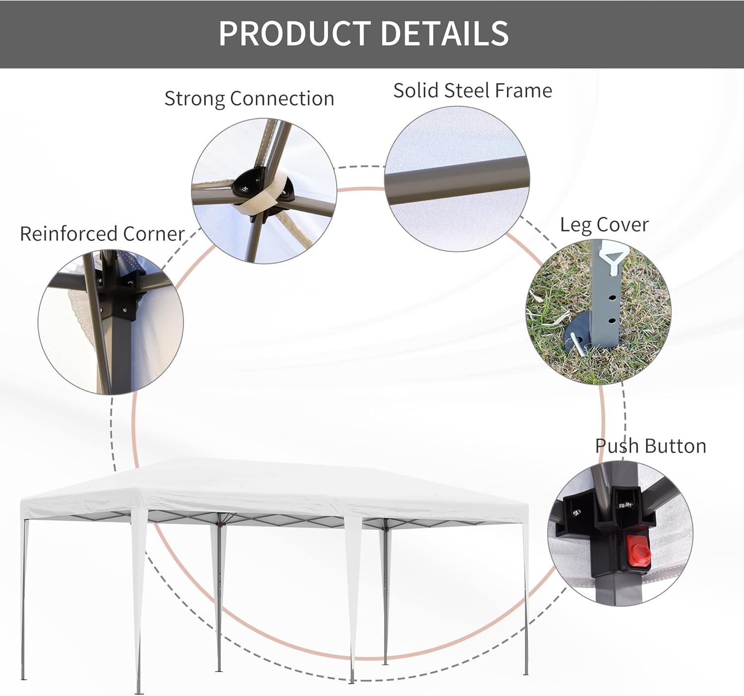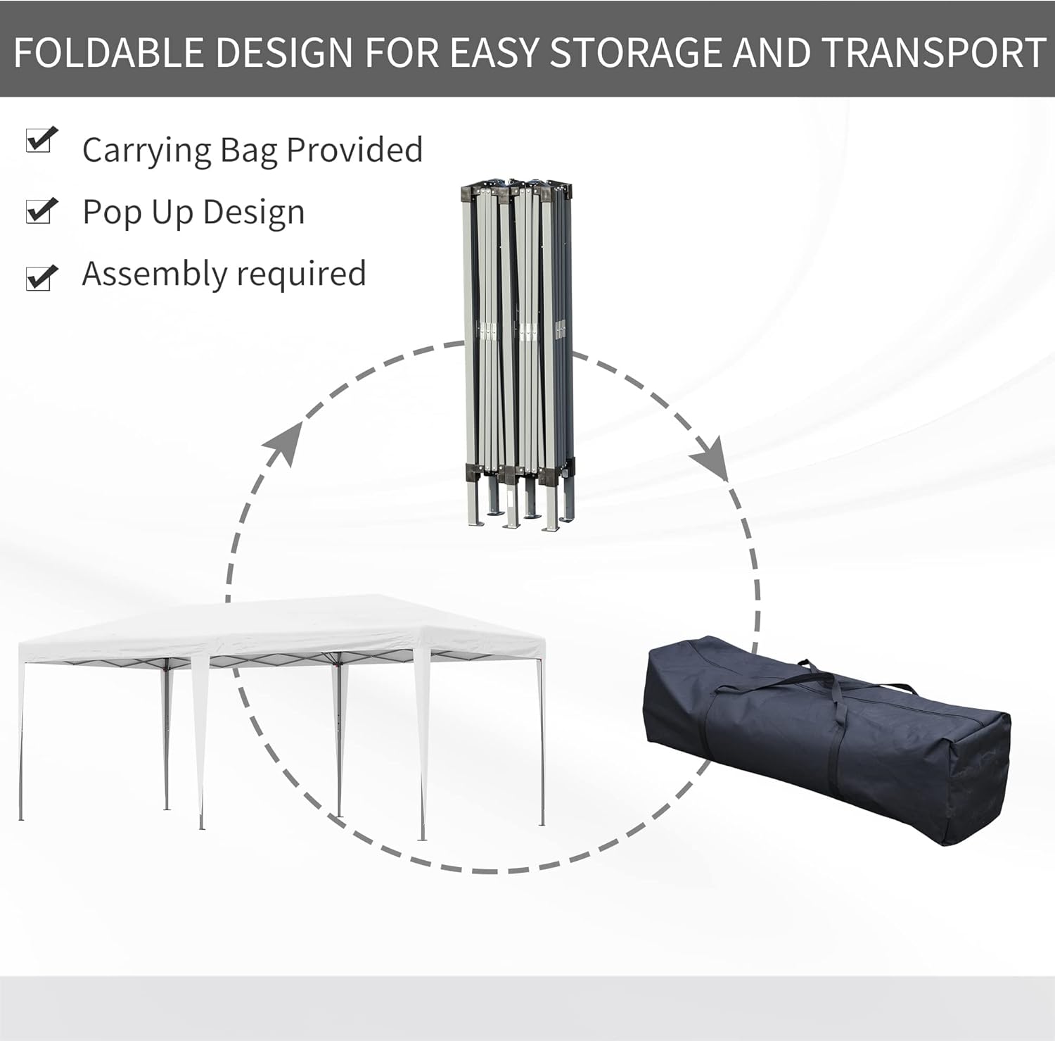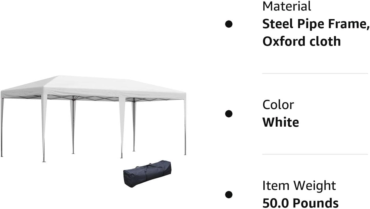 Portable Pop Up: Our extra-large outdoor canopy tent can help you put on parties and other outdoor events. Swift to set up and tear down, it has a foldable frame and convenient carrying bag so you can pop-in, pop-up, and pop-out with a little help from friends.