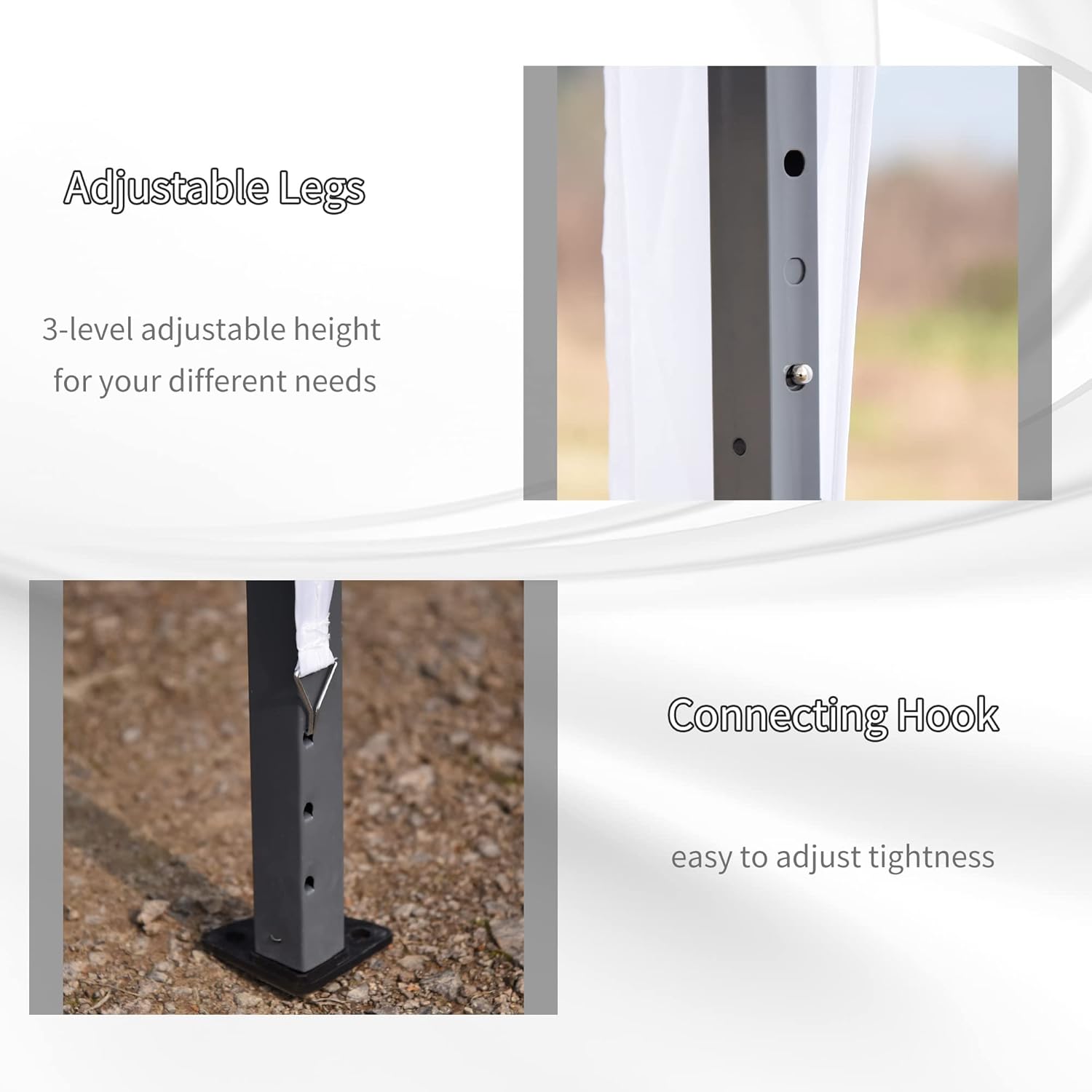 Upgraded Heavy Duty Frame: A truss-reinforced roof and 1.25″ thick powder-coated steel pipe create a strong easy up canopy. Stakes secure it to any soft surface. Customize the height of your pop-up canopy tent with height-adjustable legs capable of three settings.