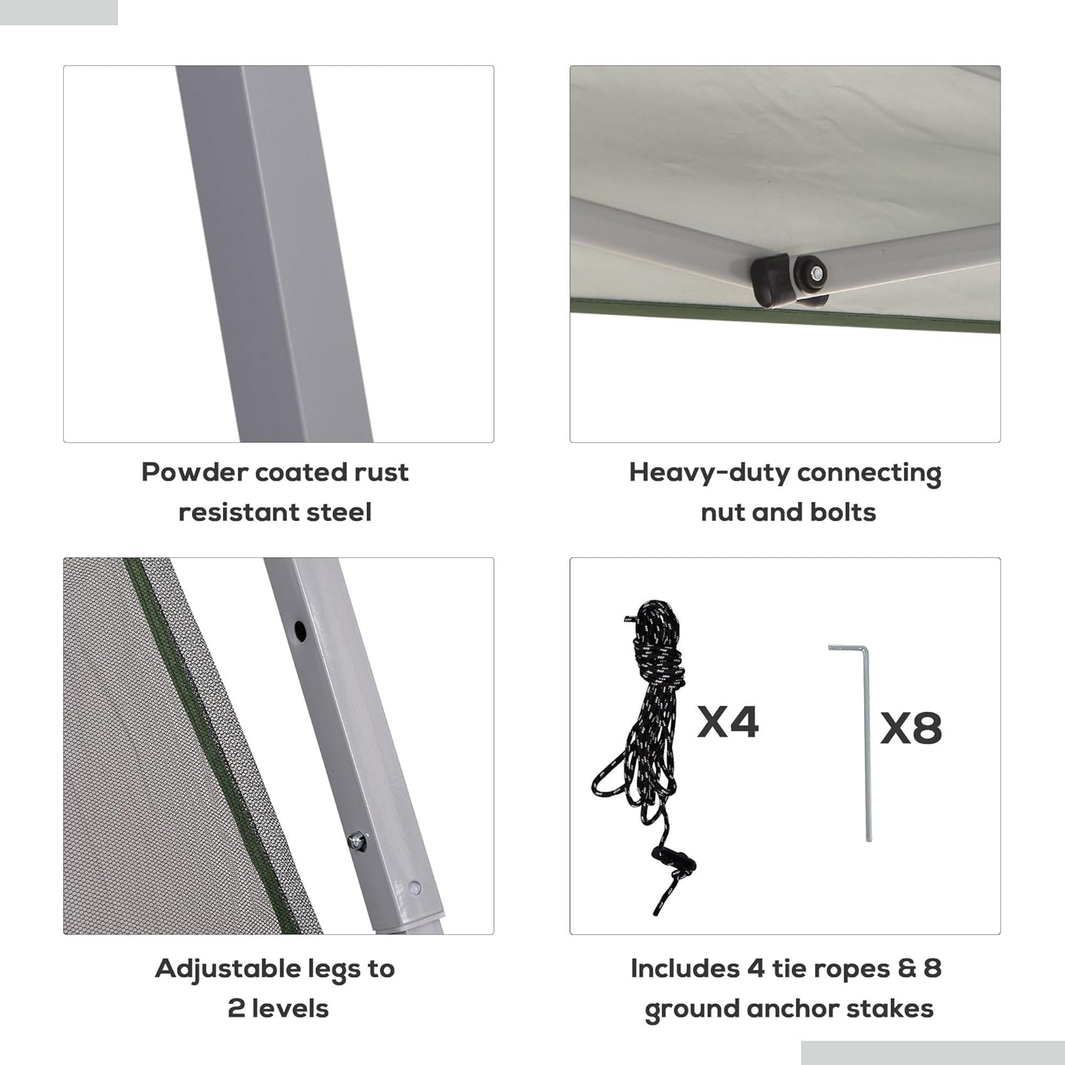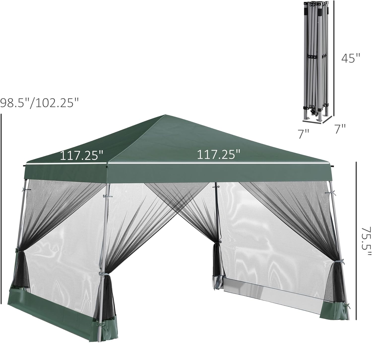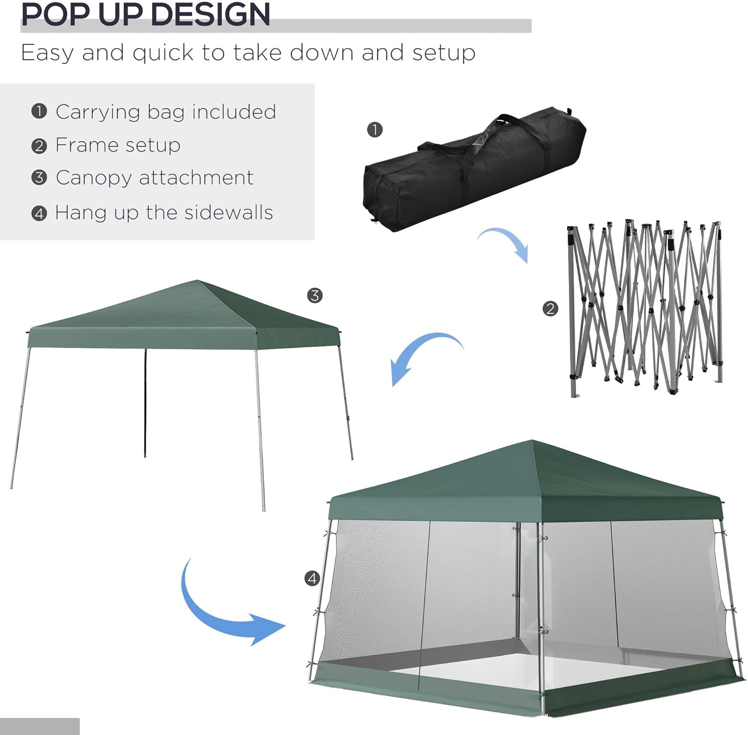 Outsunny Slant Leg Pop Up Canopy Tent with Netting and Carry Bag, Instant Sun Shelter, Tents for Parties, Height Adjustable, for Outdoor, Garden, Patio, (11.5’x11.5′ Base / 10’x10′ Top), Green