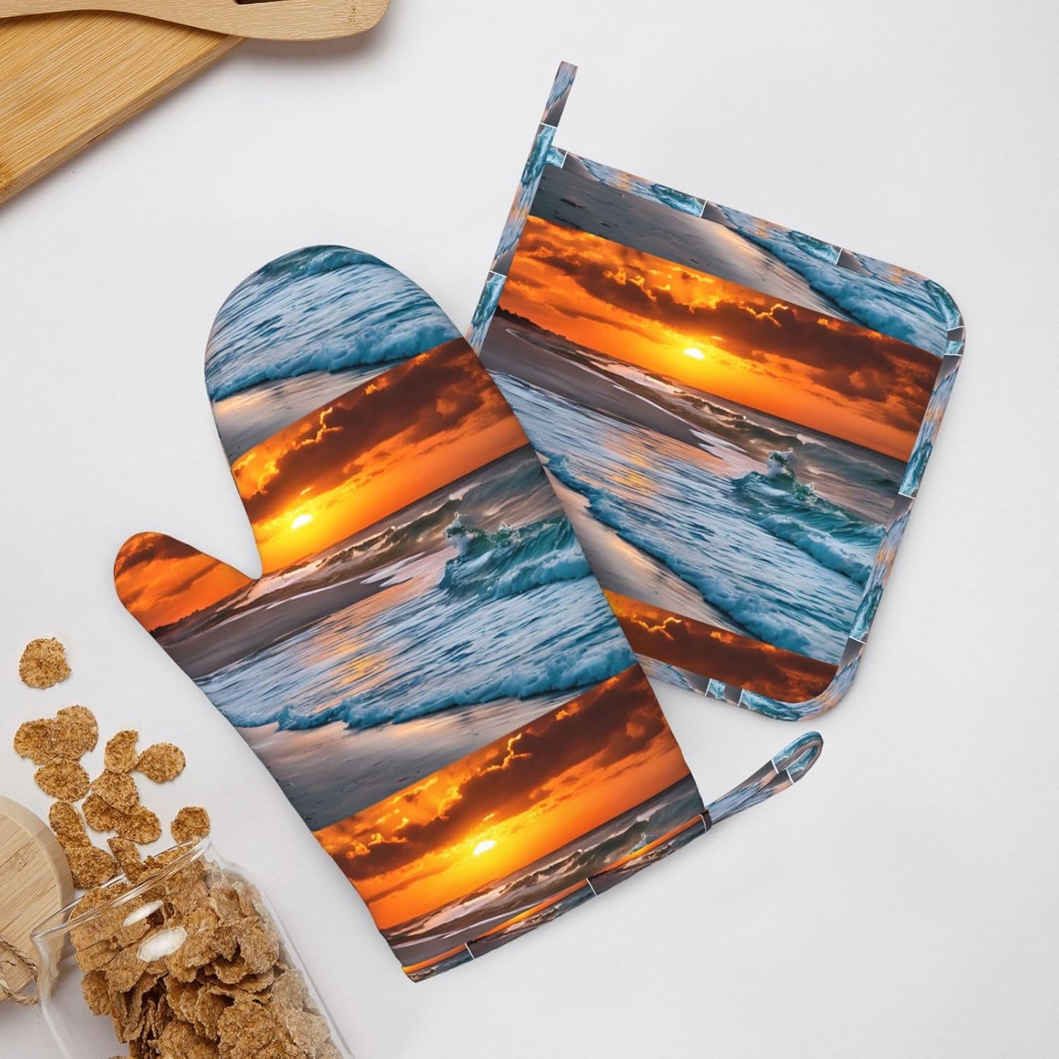 Be the first to review “Oven Mitts and Pot Holders for Outdoor Cooking Baking BBQs Heat Resistant Polyester Silicone Oven Gloves Hot Pads, Kitchen Accessories Must Haves List – Beach with Sunset”