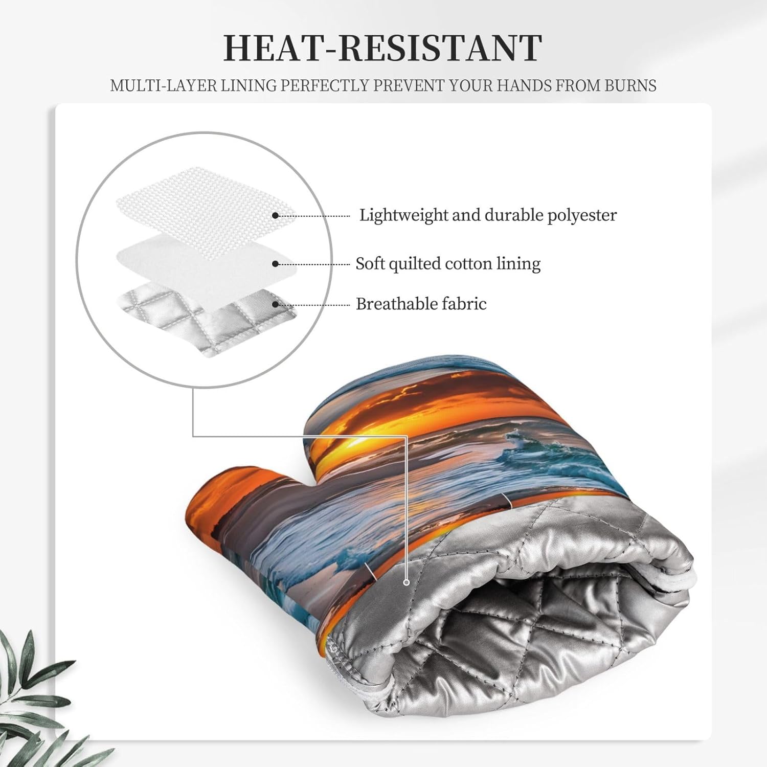 Oven Mitts and Pot Holders for Outdoor Cooking Baking BBQs Heat Resistant Polyester Silicone Oven Gloves Hot Pads, Kitchen Accessories Must Haves List – Beach with Sunset