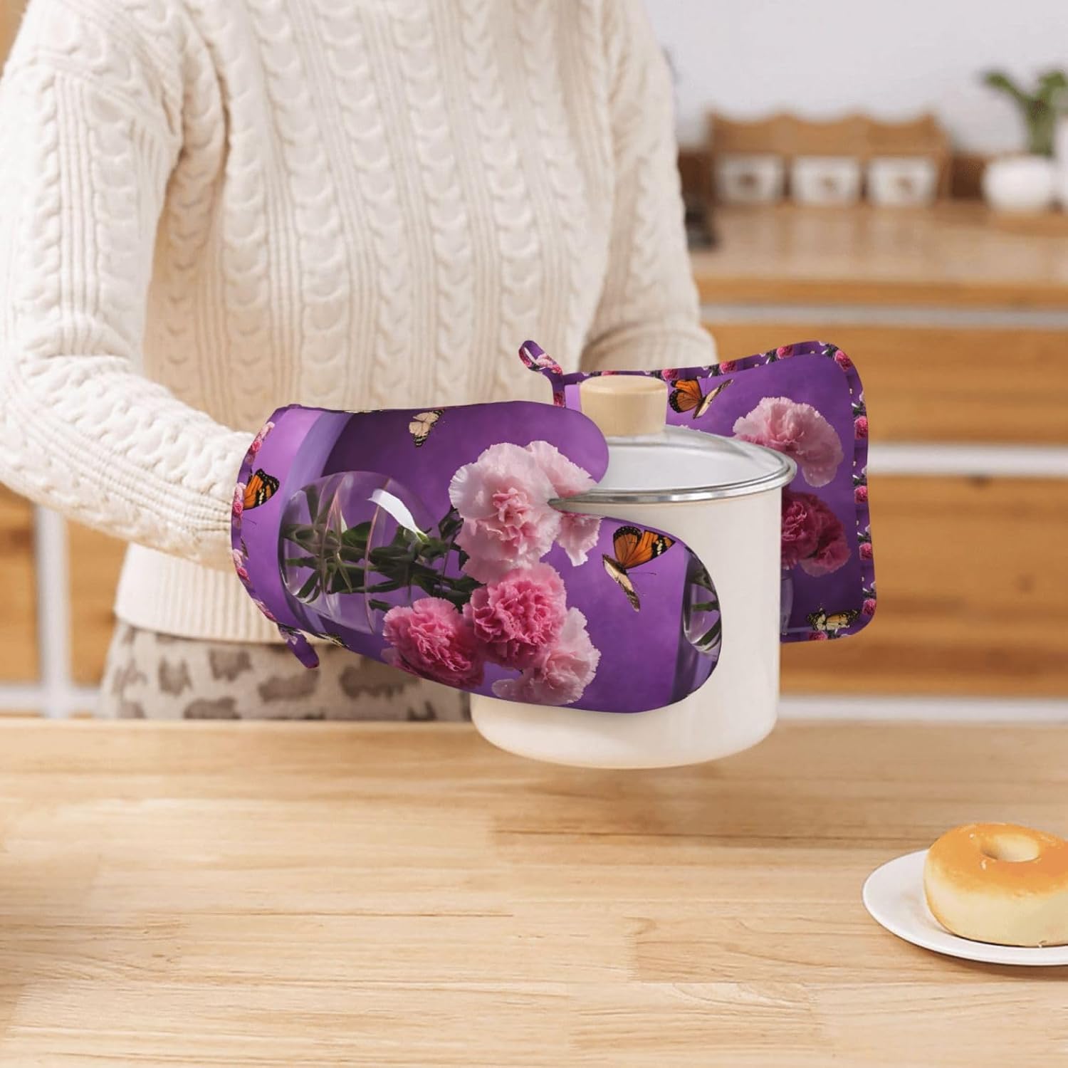 Be the first to review “Oven Mitts and Pot Holders for Outdoor Cooking Baking BBQs Heat Resistant Polyester Silicone Oven Gloves Hot Pads, Kitchen Accessories Must Haves List – Beautiful Purple Butterfly Floral”