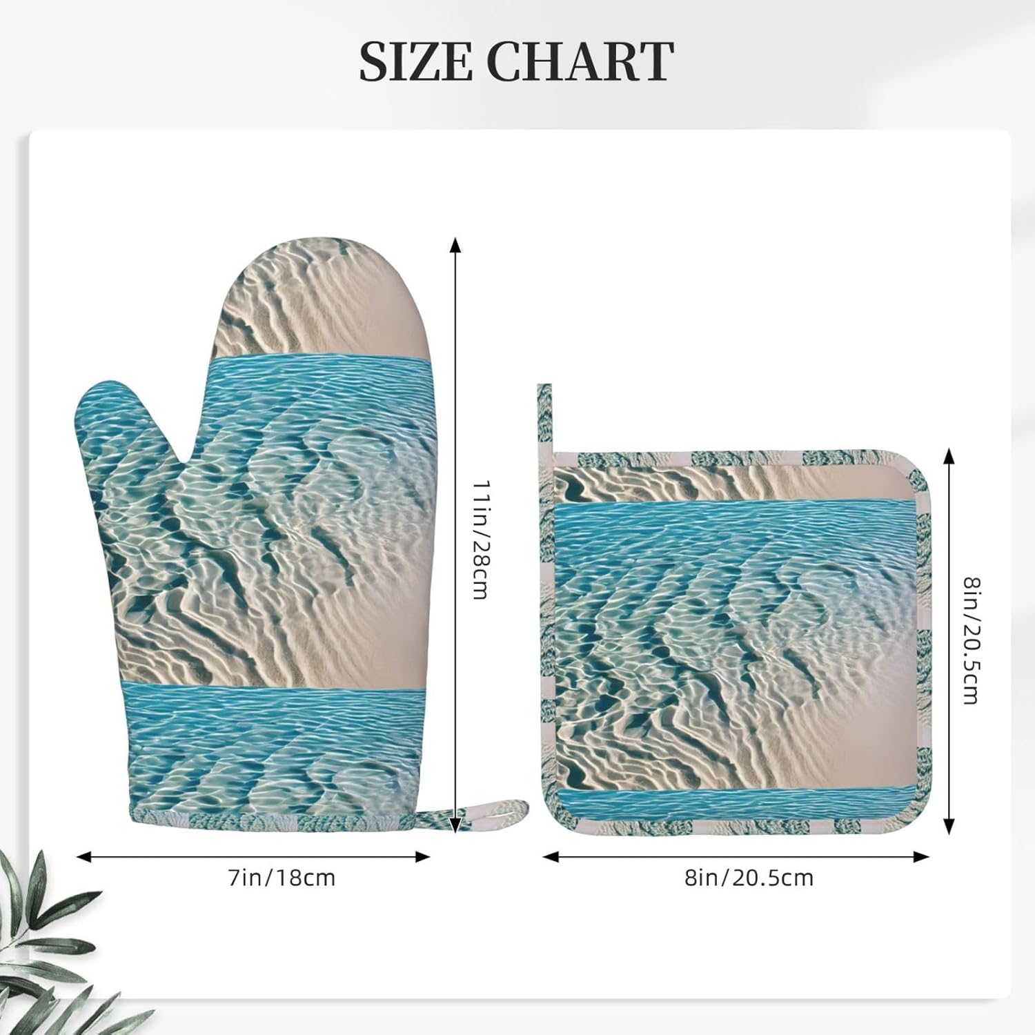 Oven Mitts and Pot Holders for Outdoor Cooking Baking BBQs Heat Resistant Polyester Silicone Oven Gloves Hot Pads, Kitchen Accessories Must Haves List – Clear Sea Water