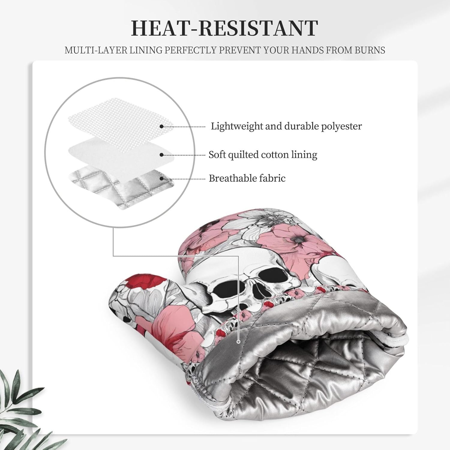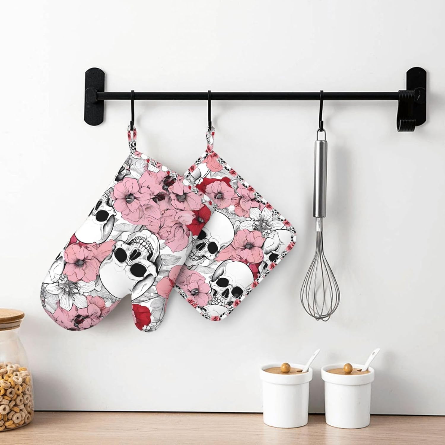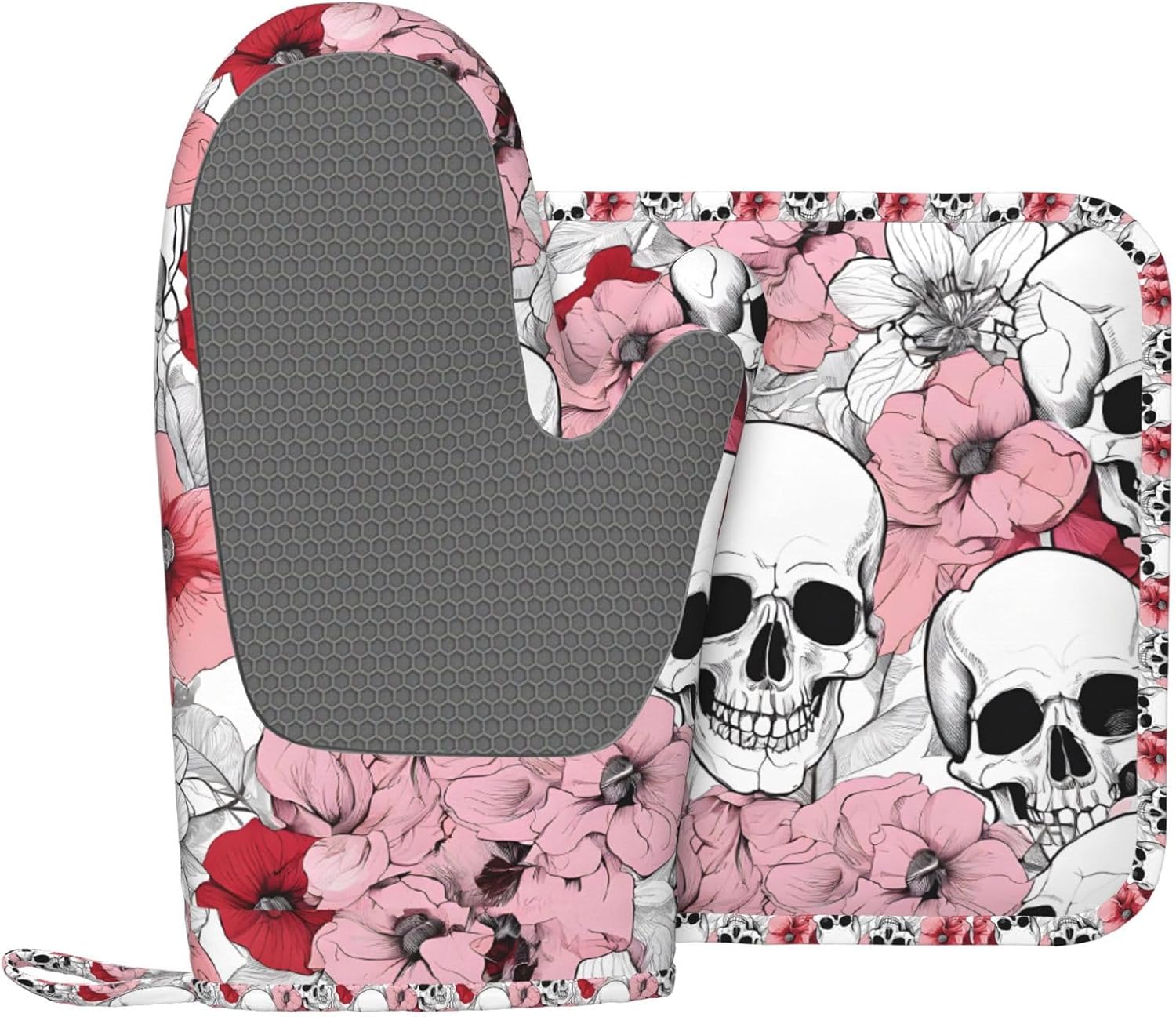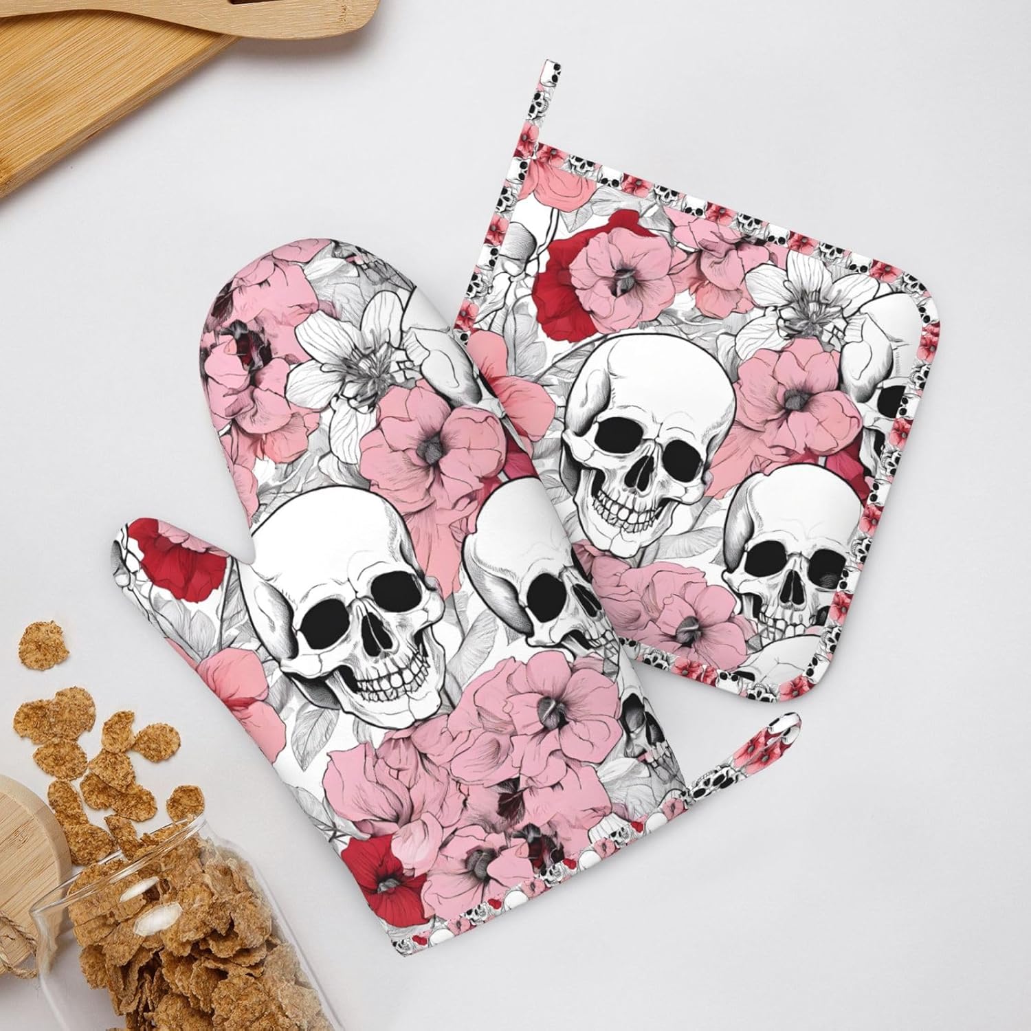 Oven Mitts and Pot Holders for Outdoor Cooking Baking BBQs Heat Resistant Polyester Silicone Oven Gloves Hot Pads, Kitchen Accessories Must Haves List – Color Skulls