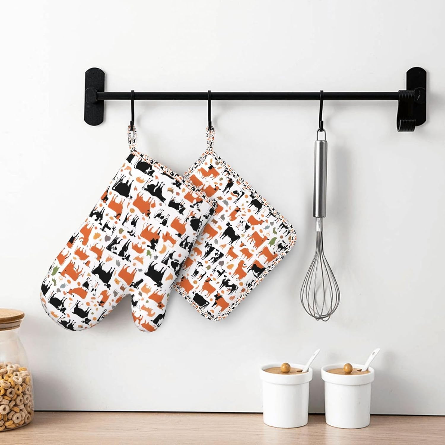 Be the first to review “Oven Mitts and Pot Holders for Outdoor Cooking Baking BBQs Heat Resistant Polyester Silicone Oven Gloves Hot Pads, Kitchen Accessories Must Haves List – Cow Print Pattern”