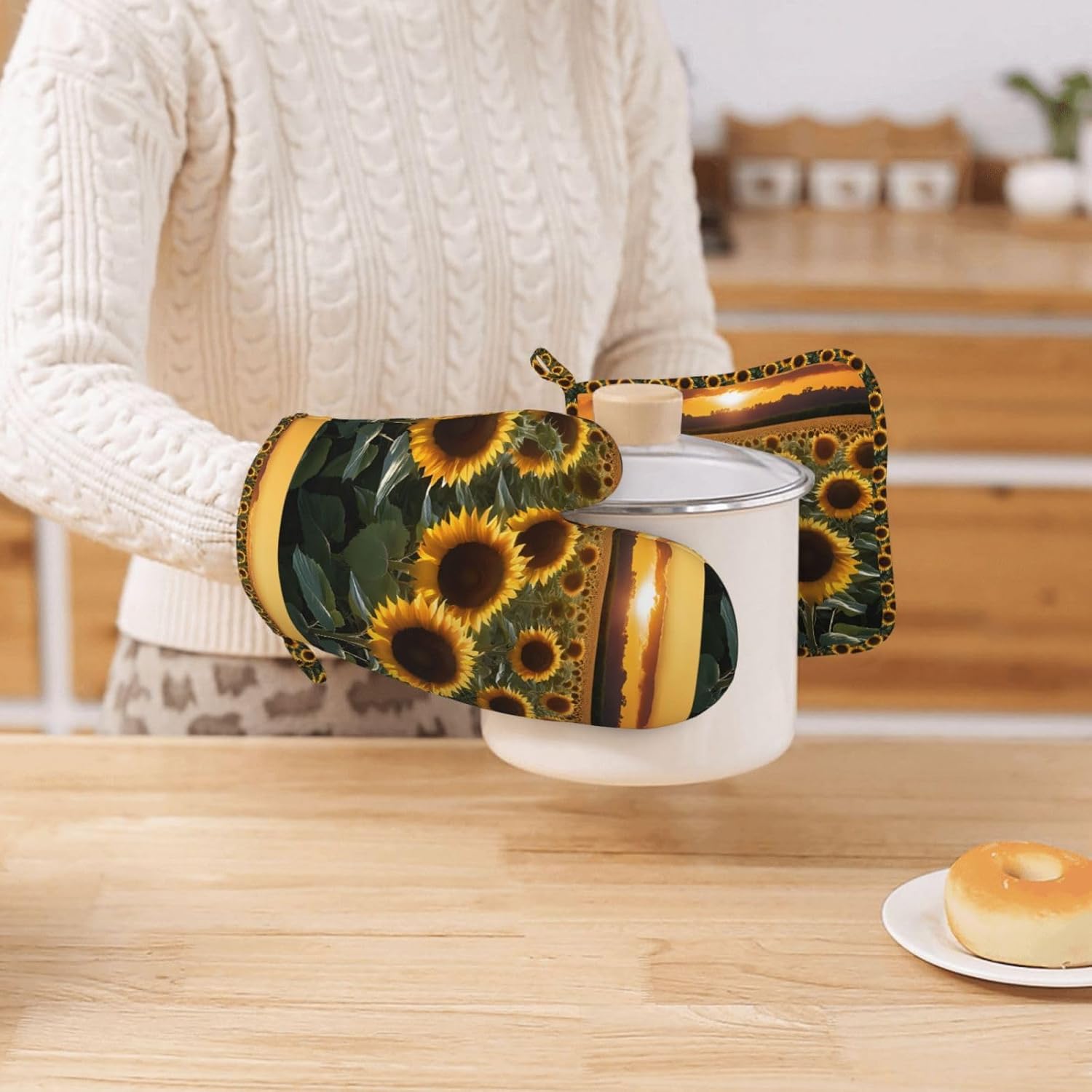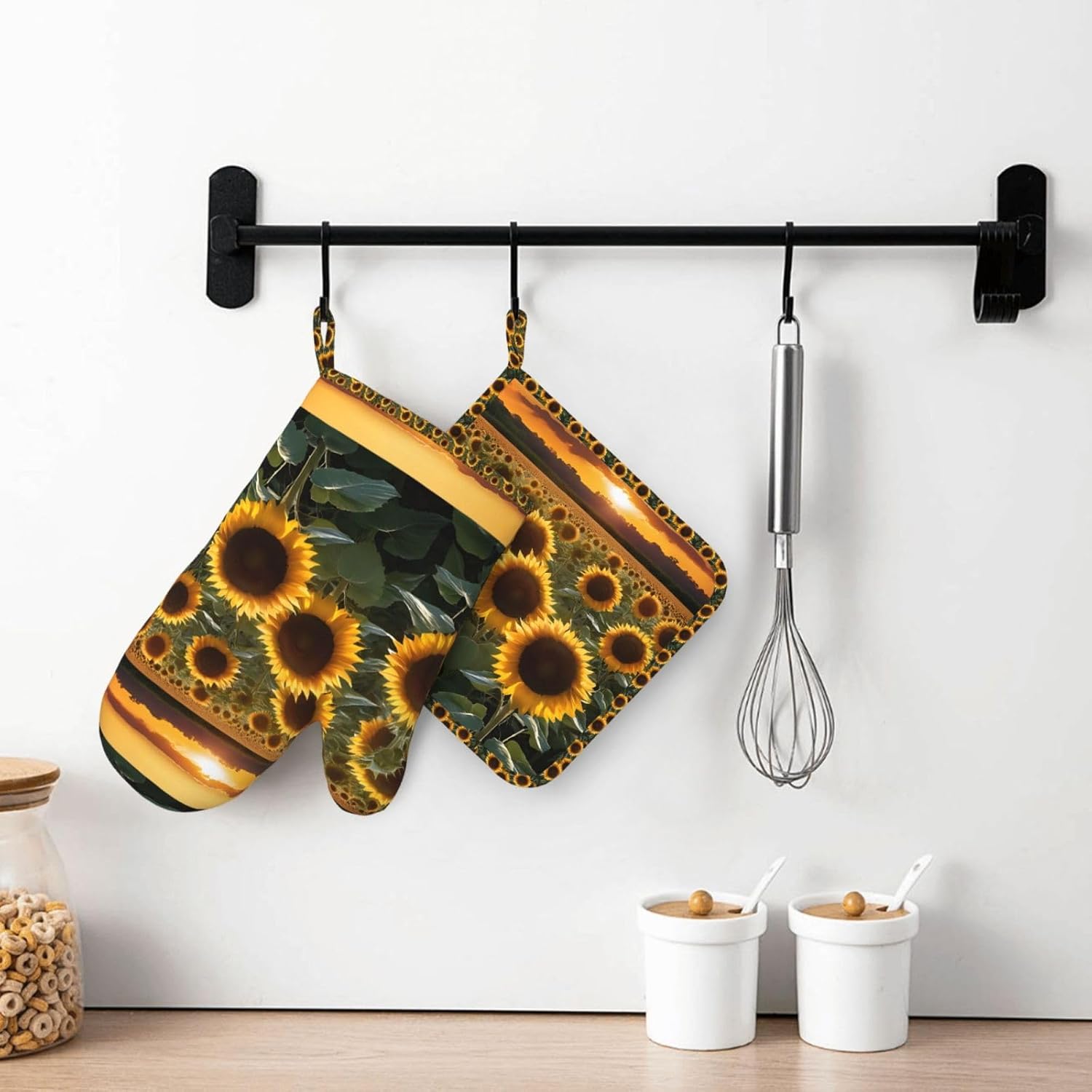 Oven Mitts and Pot Holders for Outdoor Cooking Baking BBQs Heat Resistant Polyester Silicone Oven Gloves Hot Pads, Kitchen Accessories Must Haves List – Farm Sunflowers
