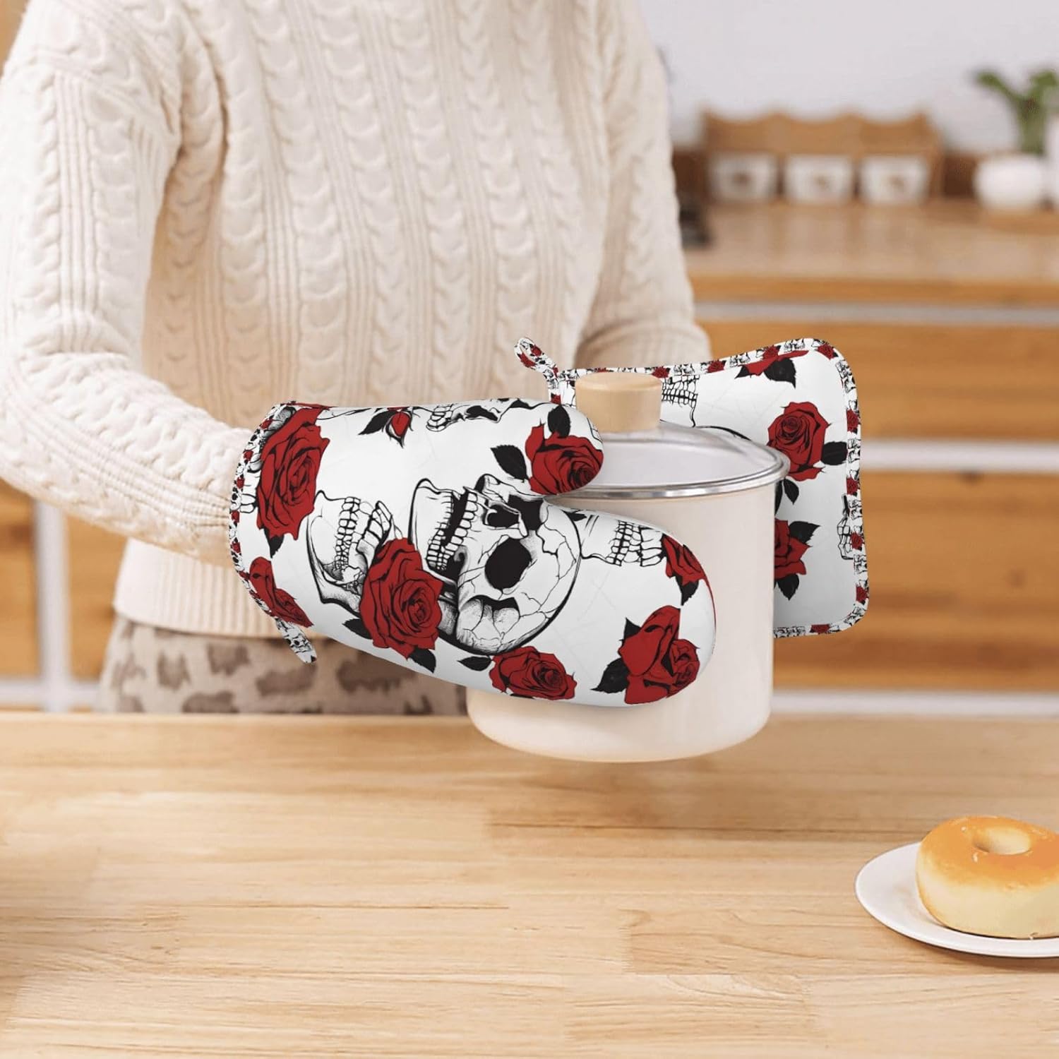Be the first to review “Oven Mitts and Pot Holders for Outdoor Cooking Baking BBQs Heat Resistant Polyester Silicone Oven Gloves Hot Pads, Kitchen Accessories Must Haves List – Floral Skull”
