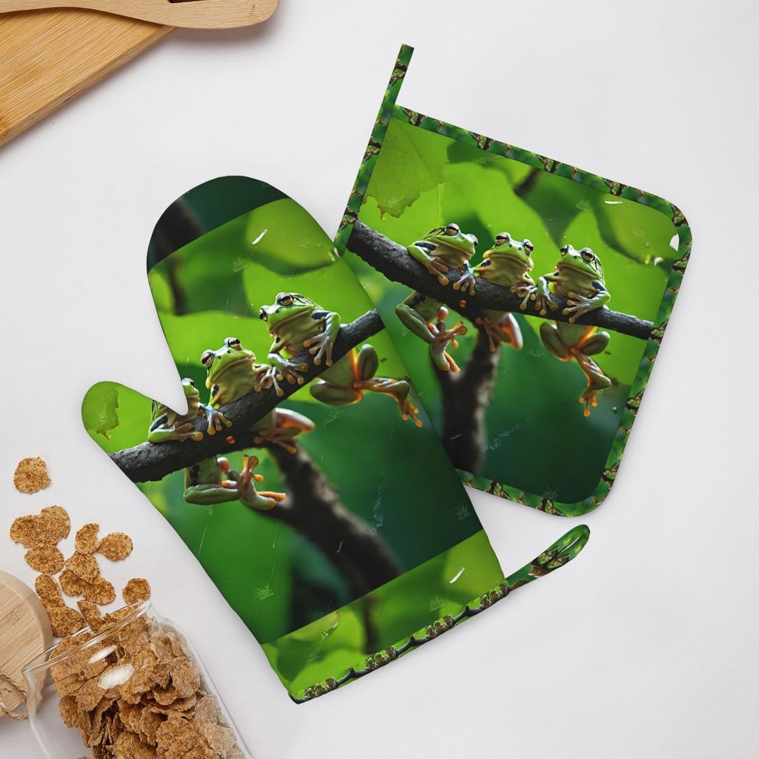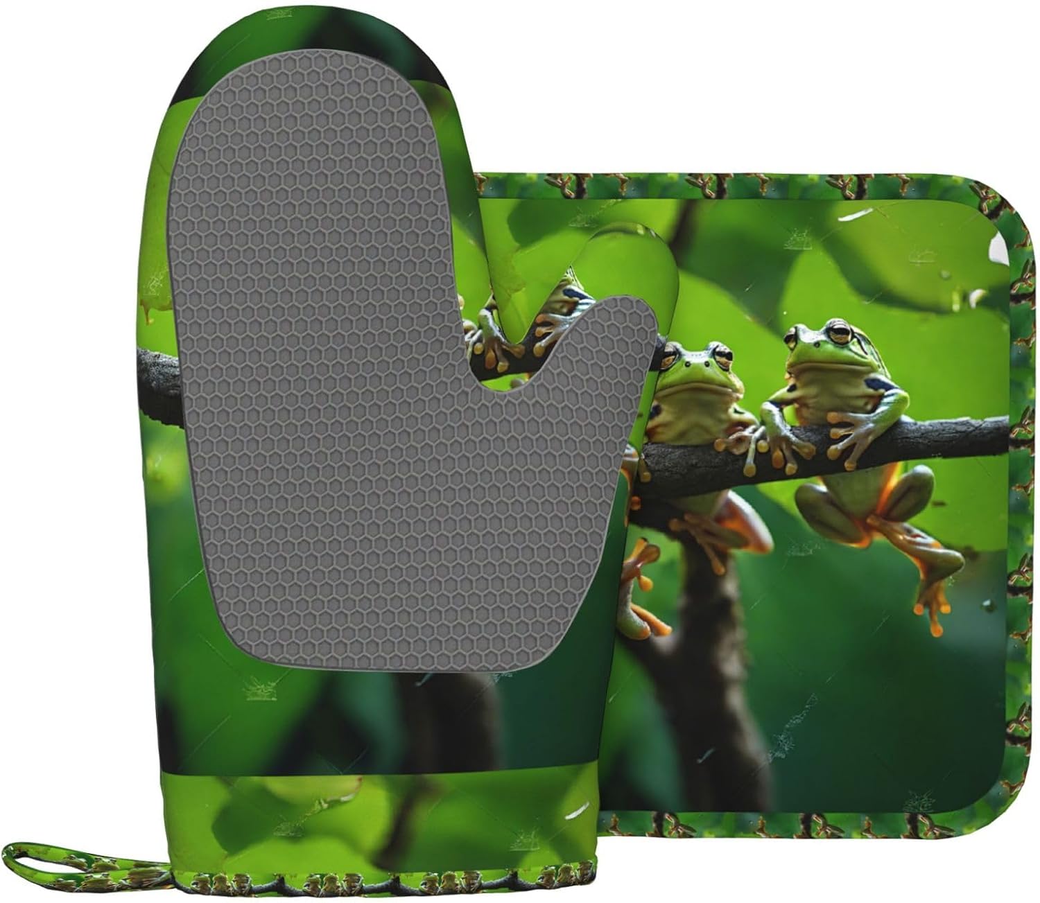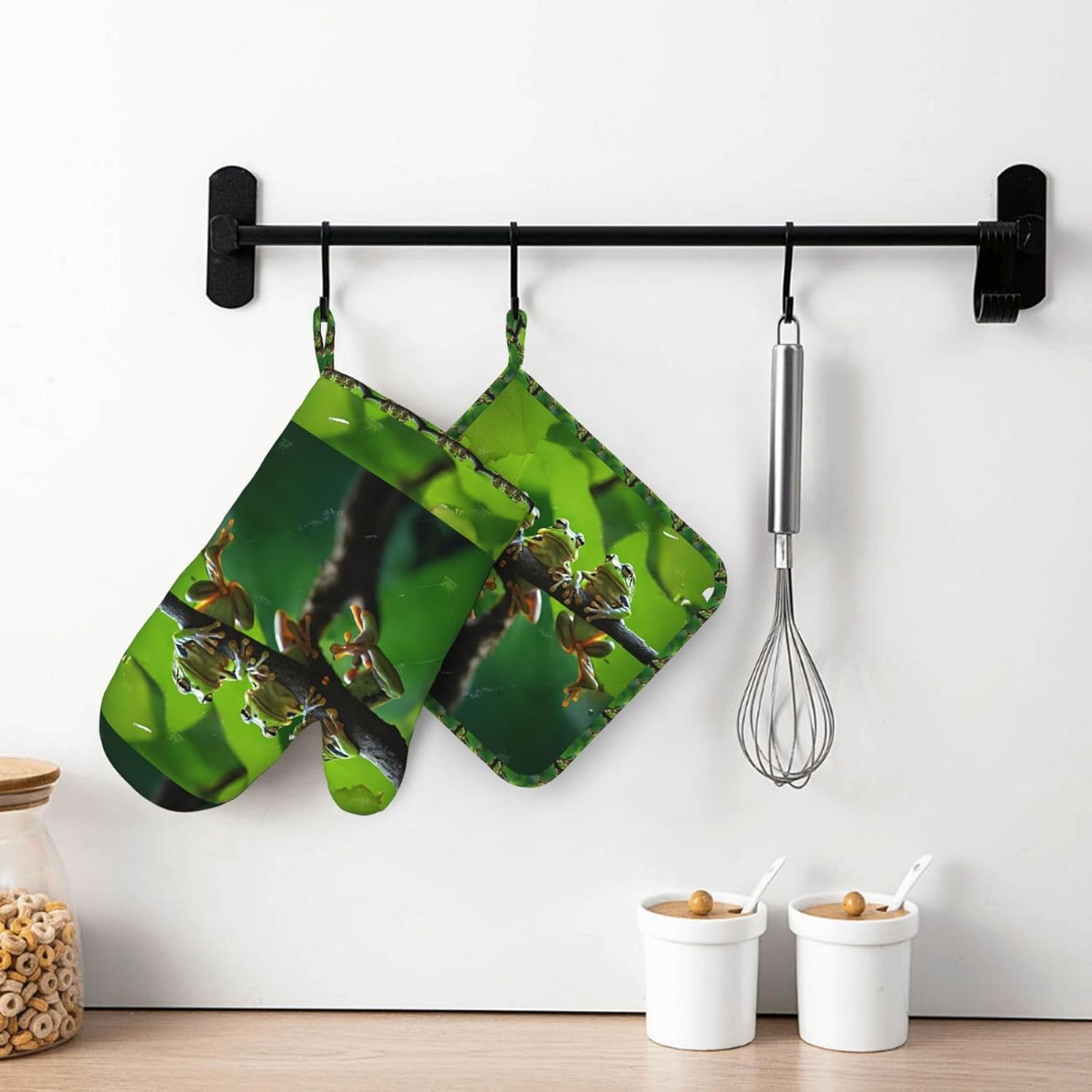 Oven Mitts and Pot Holders for Outdoor Cooking Baking BBQs Heat Resistant Polyester Silicone Oven Gloves Hot Pads, Kitchen Accessories Must Haves List – Funny Frogs