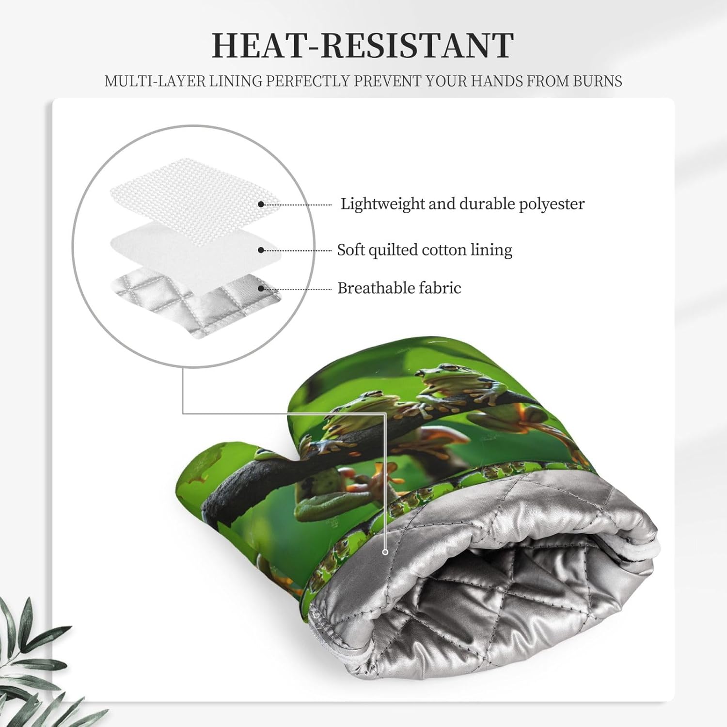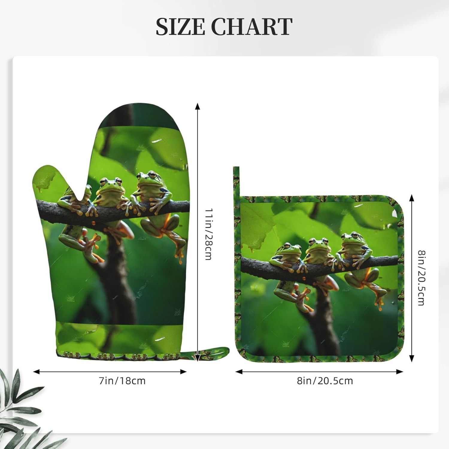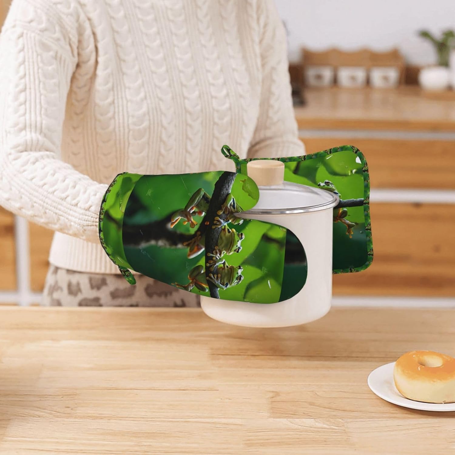 Oven Mitts and Pot Holders for Outdoor Cooking Baking BBQs Heat Resistant Polyester Silicone Oven Gloves Hot Pads, Kitchen Accessories Must Haves List – Funny Frogs