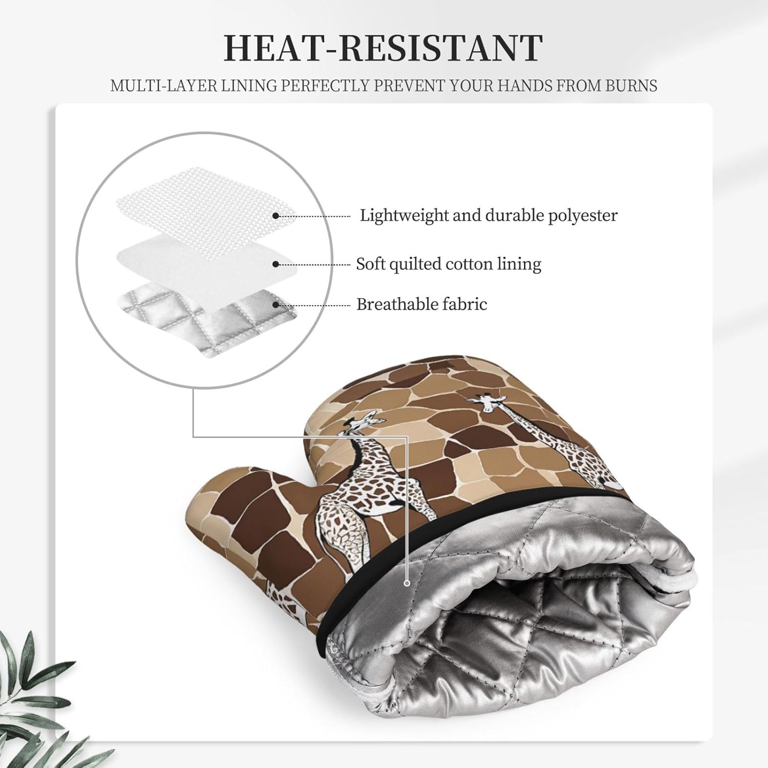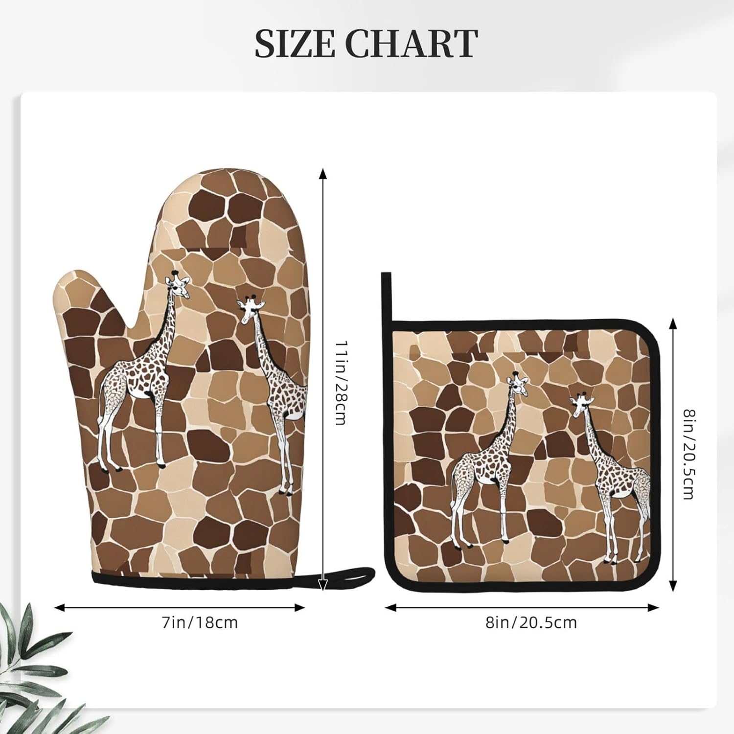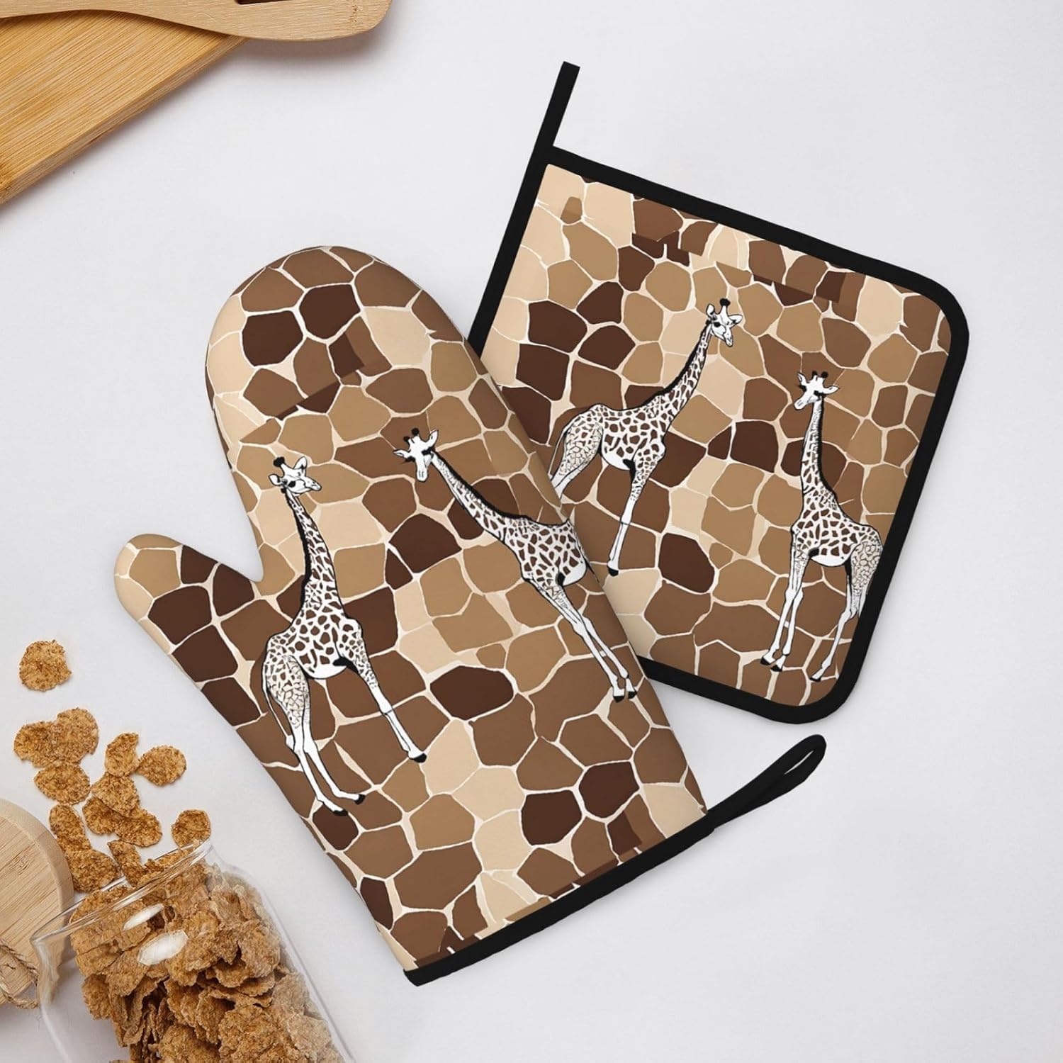 Oven Mitts and Pot Holders for Outdoor Cooking Baking BBQs Heat Resistant Polyester Silicone Oven Gloves Hot Pads, Kitchen Accessories Must Haves List – Giraffe Print