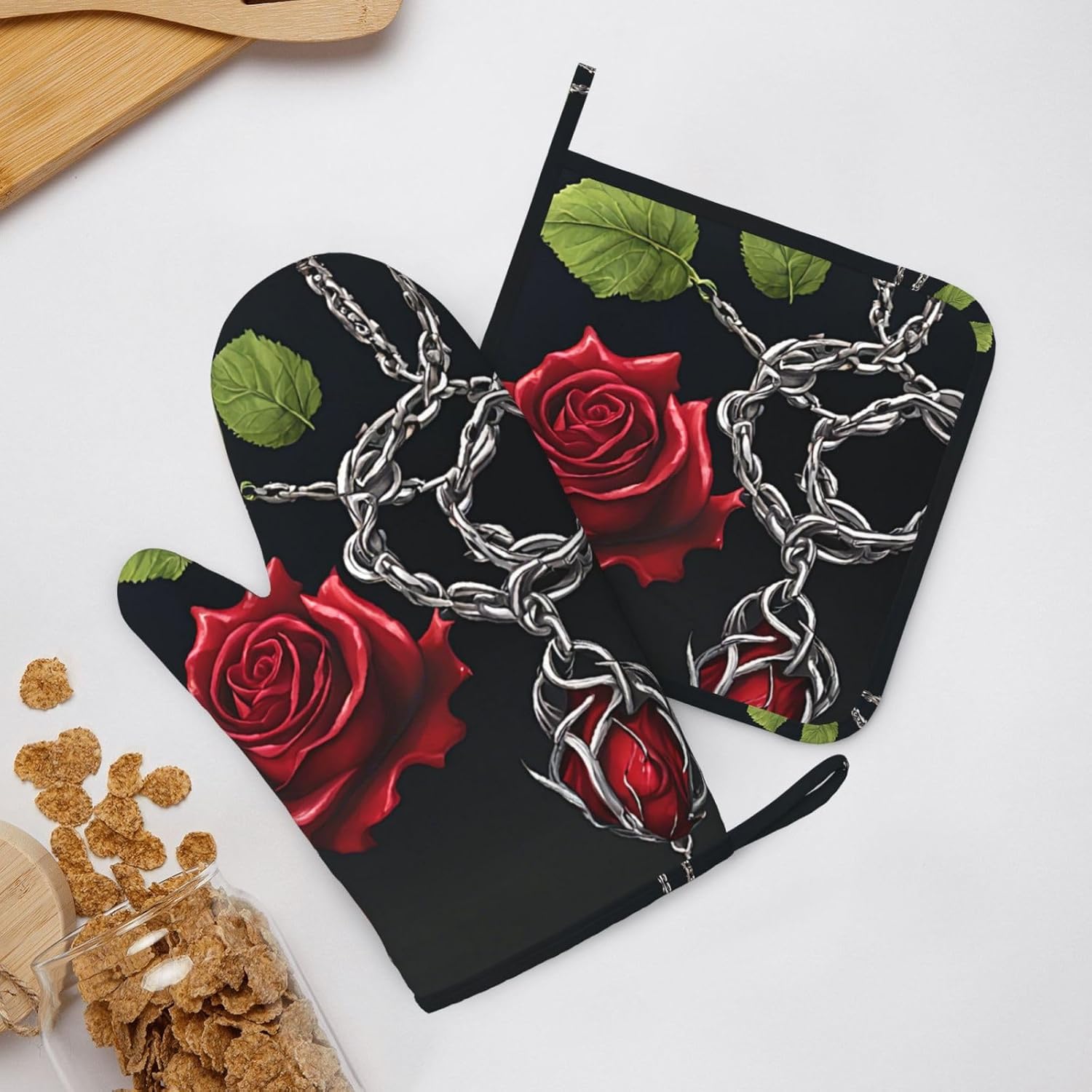 Be the first to review “Oven Mitts and Pot Holders for Outdoor Cooking Baking BBQs Heat Resistant Polyester Silicone Oven Gloves Hot Pads, Kitchen Accessories Must Haves List – Gothic Black Roses”