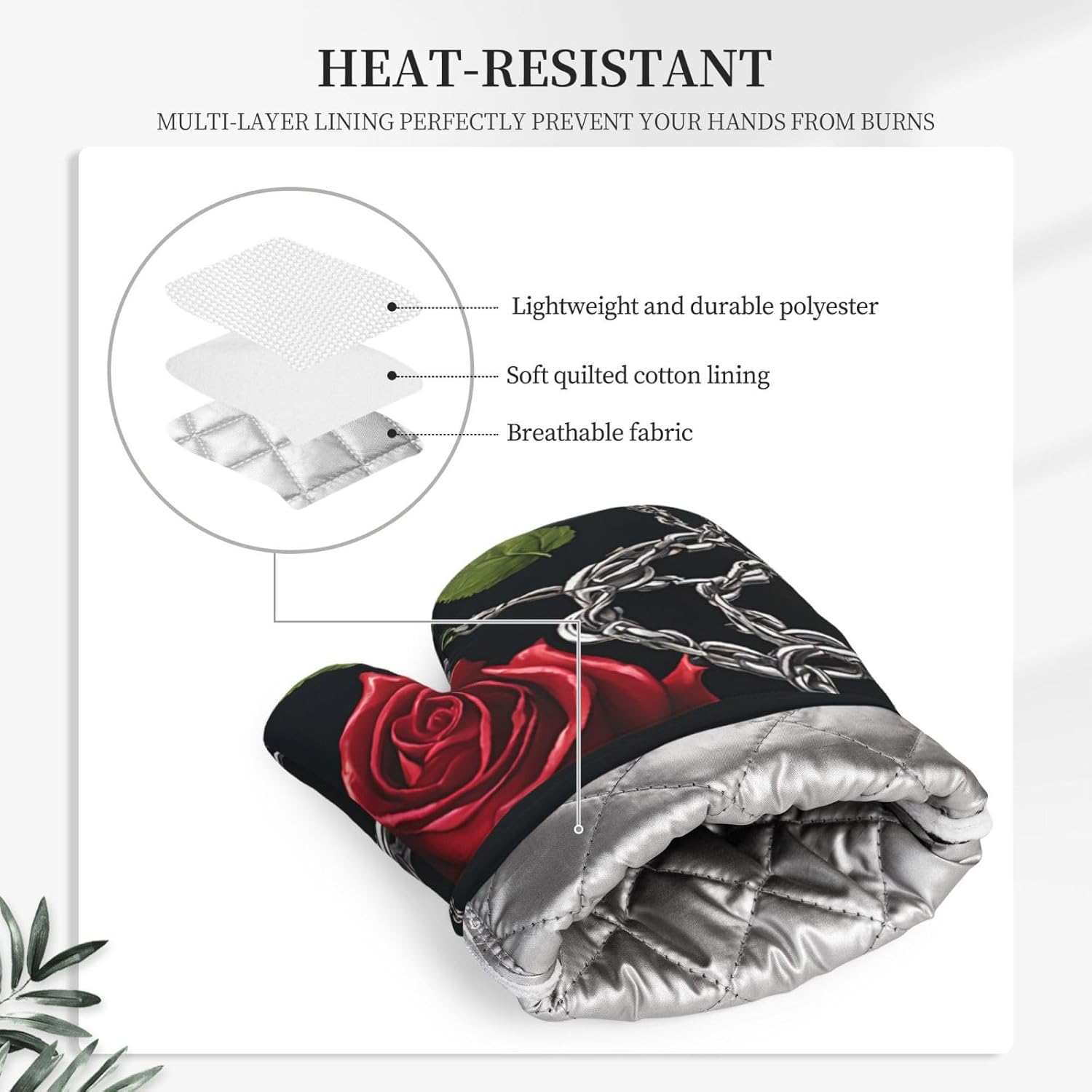 Oven Mitts and Pot Holders for Outdoor Cooking Baking BBQs Heat Resistant Polyester Silicone Oven Gloves Hot Pads, Kitchen Accessories Must Haves List – Gothic Black Roses