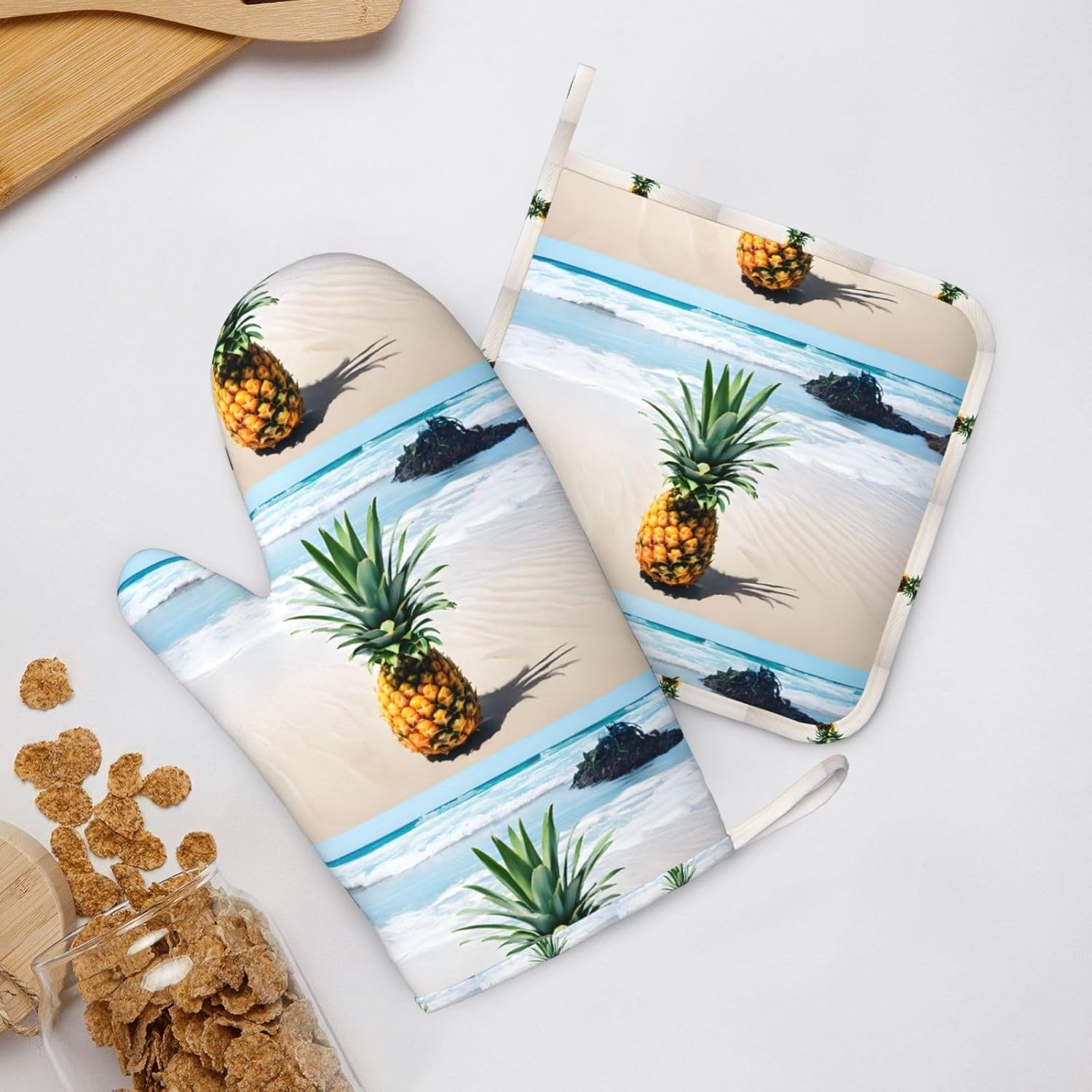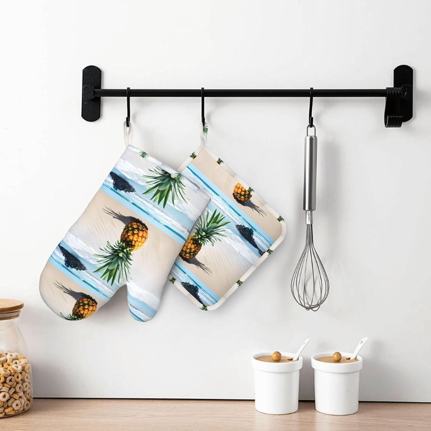 Oven Mitts and Pot Holders for Outdoor Cooking Baking BBQs Heat Resistant Polyester Silicone Oven Gloves Hot Pads, Kitchen Accessories Must Haves List – Pineapple by The Sea
