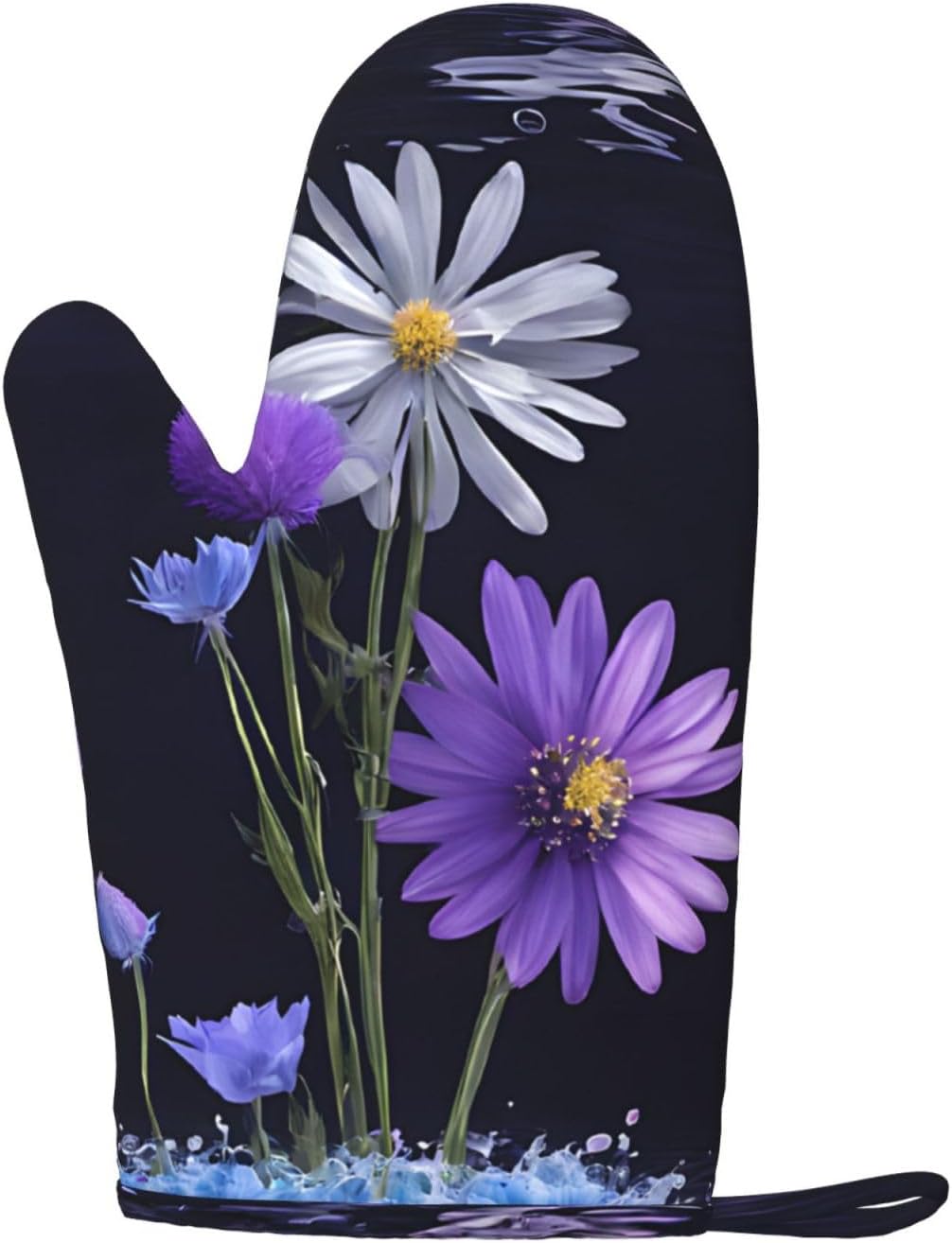 Oven Mitts and Pot Holders for Outdoor Cooking Baking BBQs Heat Resistant Polyester Silicone Oven Gloves Hot Pads, Kitchen Accessories Must Haves List – Purple Flower