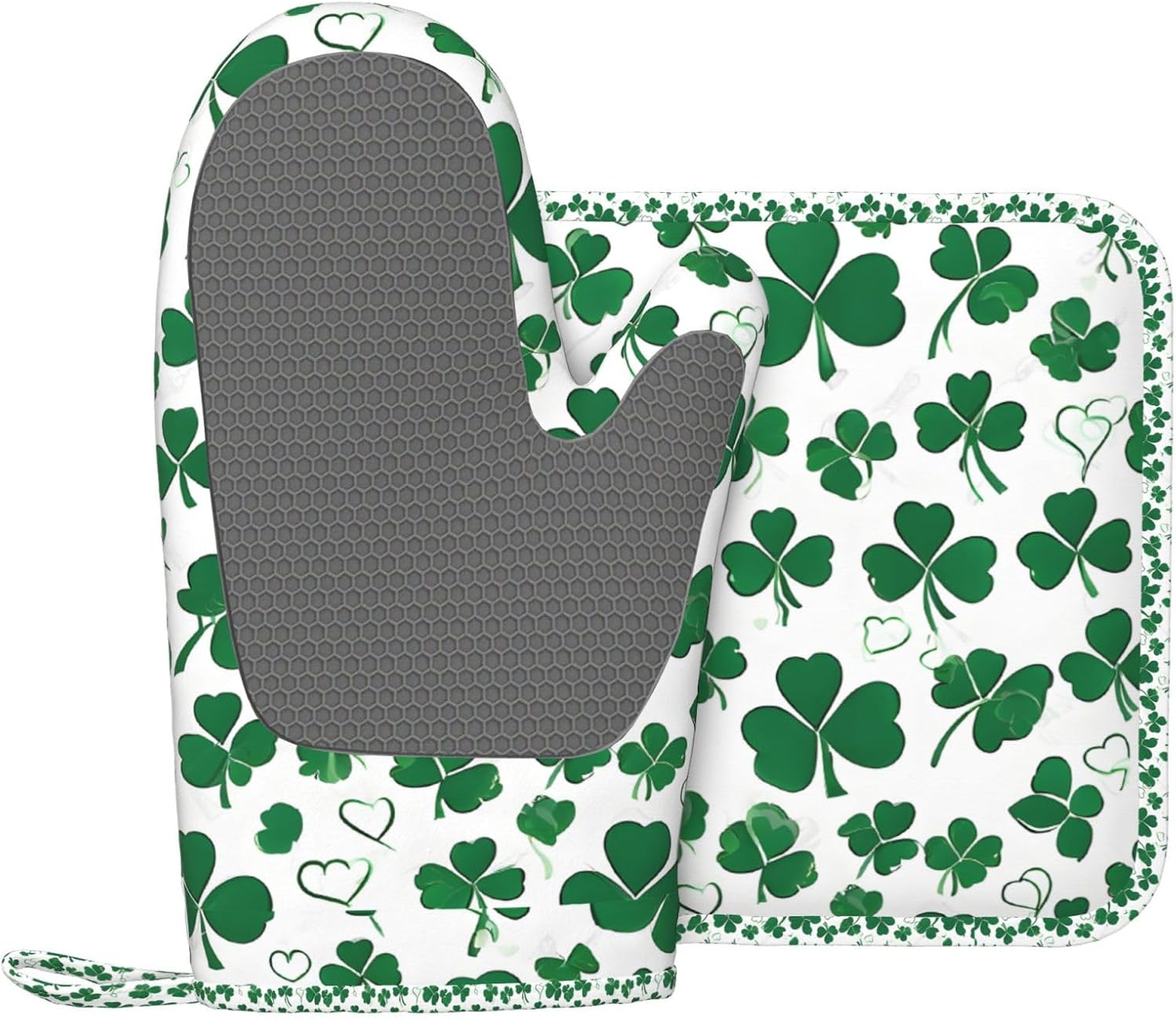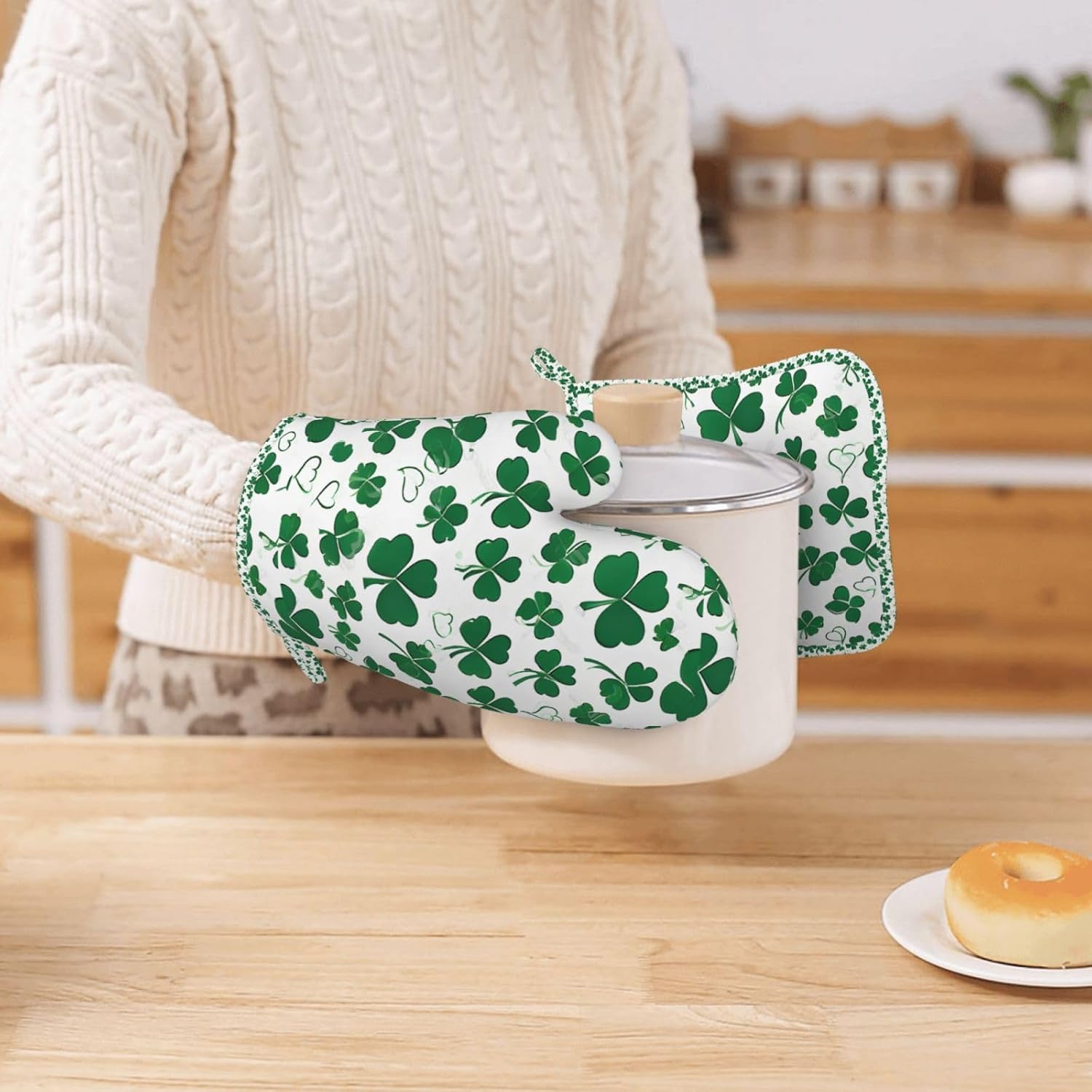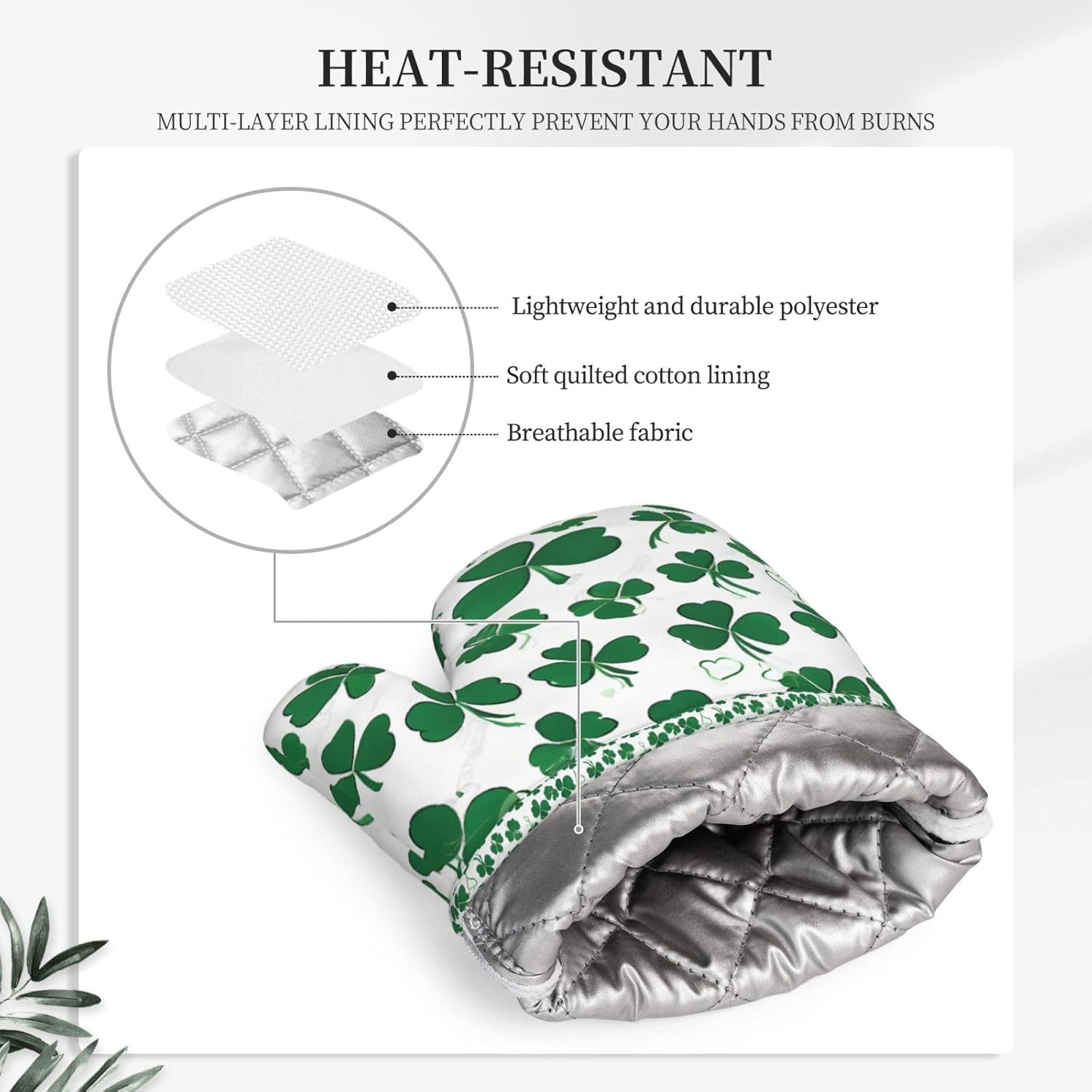 Oven Mitts and Pot Holders for Outdoor Cooking Baking BBQs Heat Resistant Polyester Silicone Oven Gloves Hot Pads, Kitchen Decor and Accessories Home Must Haves List – Happy st Patrick’s Day